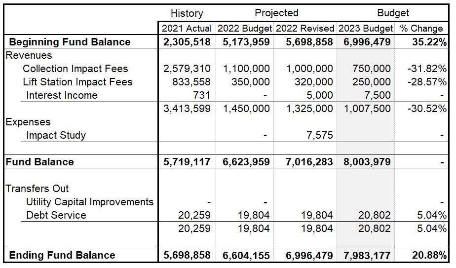 Impact Fees are charges or assessments paid by new development to generate revenue for funding or recouping the cost of capital improvements necessitated by and attributable to the new development. These revenues may not be used for any type of repair, maintenance, modernization, or expansion of existing infrastructure to serve existing development.