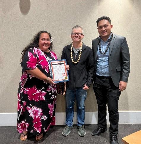 In celebration of Asian American and Pacific Islander (AAPI) Heritage Month, the City of Fort Bragg proudly recognizes the significant contributions and achievements of our diverse AAPI communities, which are integral to California's rich cultural fabric. Vice Mayor Jason Godeke presented the proclamation to Ui Wesley from Xa Kako Dile and City Manager Isaac Whippy.