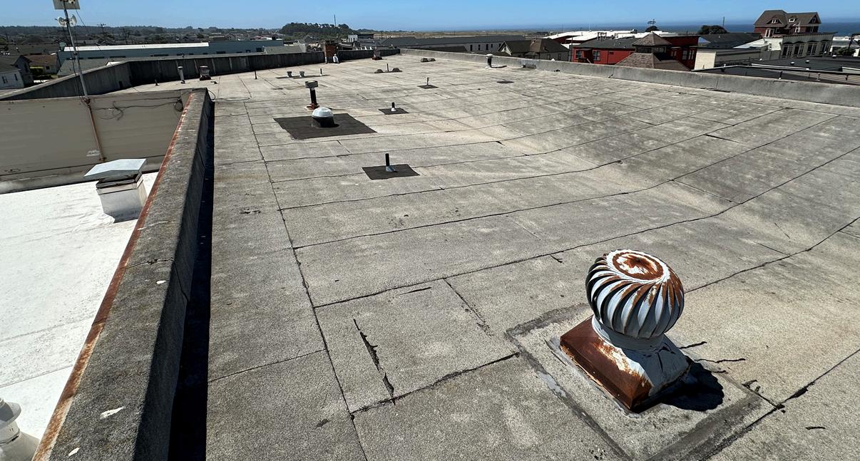 The Fort Bragg Fire Station plays a vital role in emergency preparedness for the City of Fort Bragg, and a major issue that has been affecting the Fort Bragg Fire Station for many years now is the heavily dilapidated roof. The Fire Station, located at 141 N. Main Street has long surpassed its serviceable life and requires a new roof. The roof currently collects water in various locations and has several leaks amidst the many that have been previously repaired with patches and seal coats over the years. The roof has five main sections all at different elevations, and all done with varying materials. The plan for the summer 2024 re-roof will be to perform a full tear-out on all five sections of the roof and torch down new layers of Modified Bitumen on the four flat sections. This will provide an incredibly sturdy, yet flexible finish, well suited for harsh weather. The remaining pitched section will be replaced like-for-like with 30-year shingles as per industry standards, and any exposed parapet wall will be sealed under a full-cover stainless steel cap. This project will be a considerable improvement to one of the City’s most critical facilities.