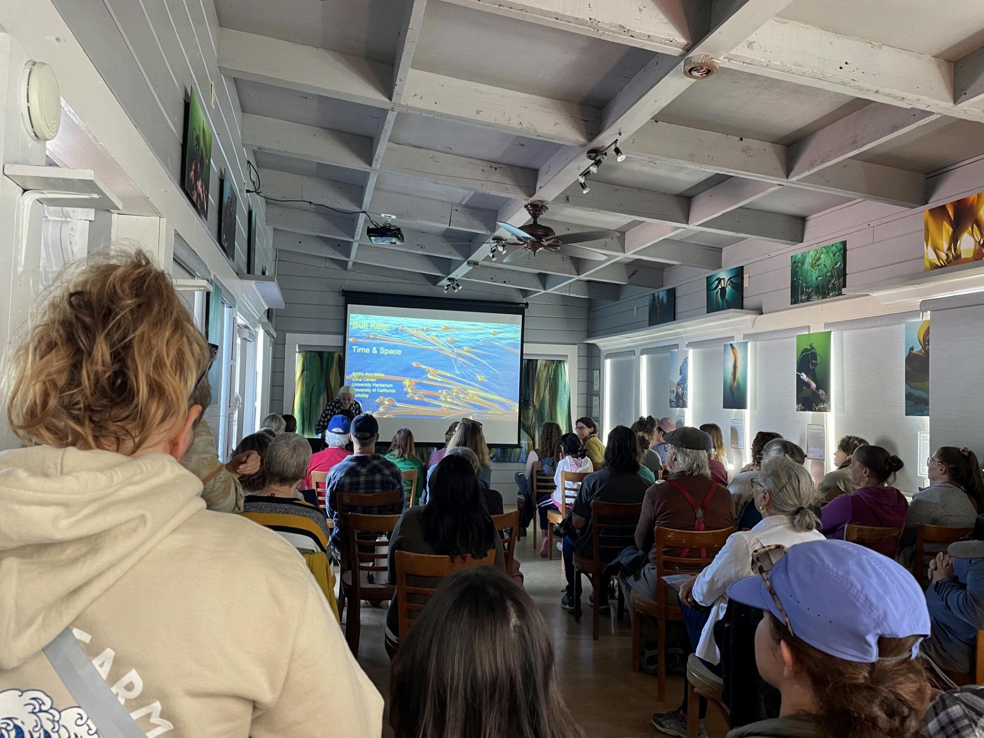 El 25 de mayo en la Estación de Campo Marino del Centro Noyo. La profesora de UC Berkeley y taxónoma de algas marinas Kathy Ann Miller presentó el ciclo de vida y la historia de las algas marinas. Varios oradores adicionales informaron sobre los hallazgos de proyectos en Caspar, Albion y Big River y cuáles son las implicaciones ecológicas, sociales, culturales y económicas de la pérdida de algas marinas para nosotros como comunidad.