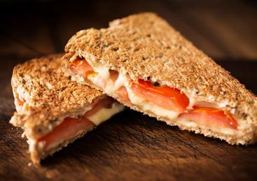 6. Spread the fruit chutney on top of spread and add slices of tomato, sprinkle the grated cheese and grill until partly melted.