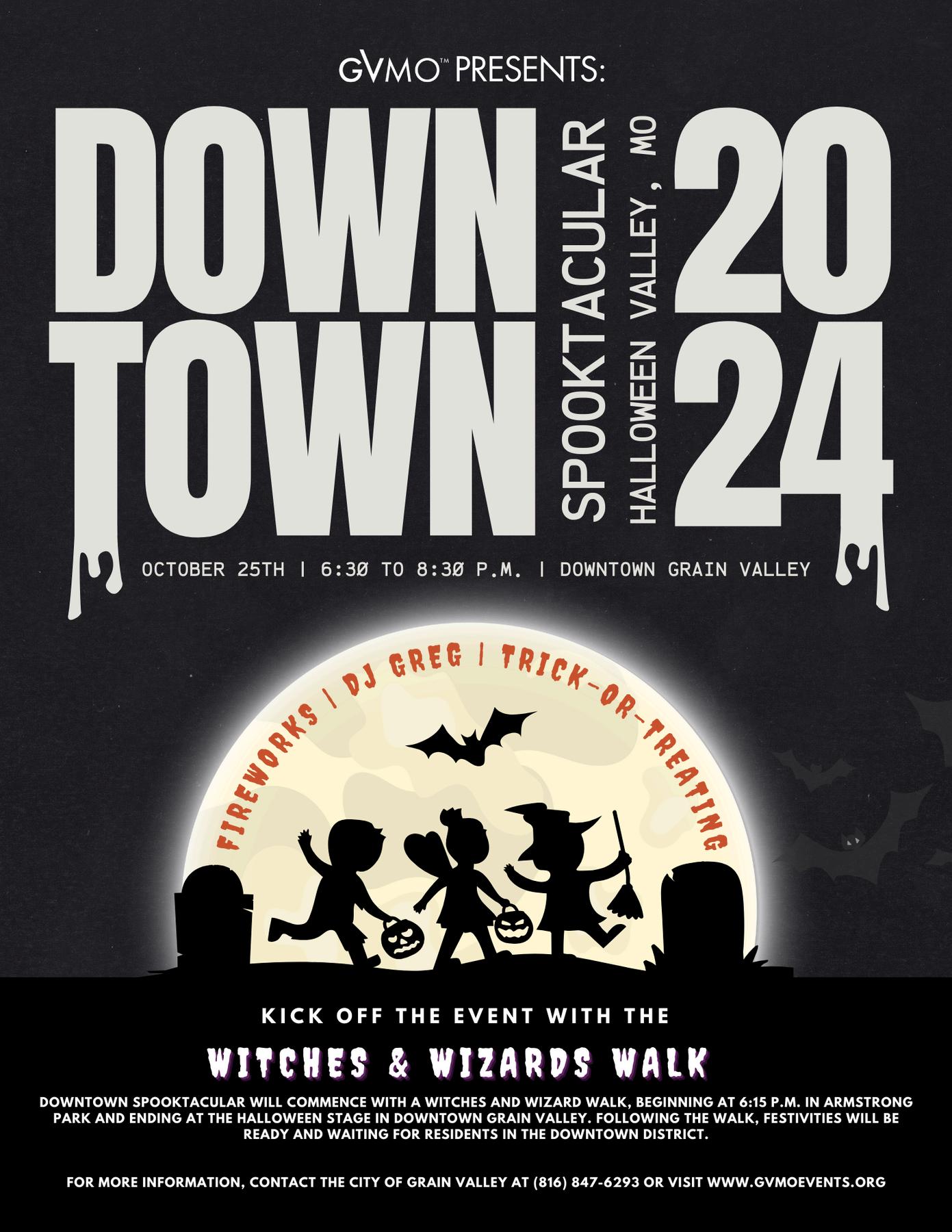 Downtown Spooktacular is Grain Valley’s signature Halloween event, bringing a thrilling transformation to Main Street each October What began as the popular Trail-or-Treat prior to 2022 has evolved into a beloved community celebration that draws thousands of residents and visitors to the heart of our downtown district