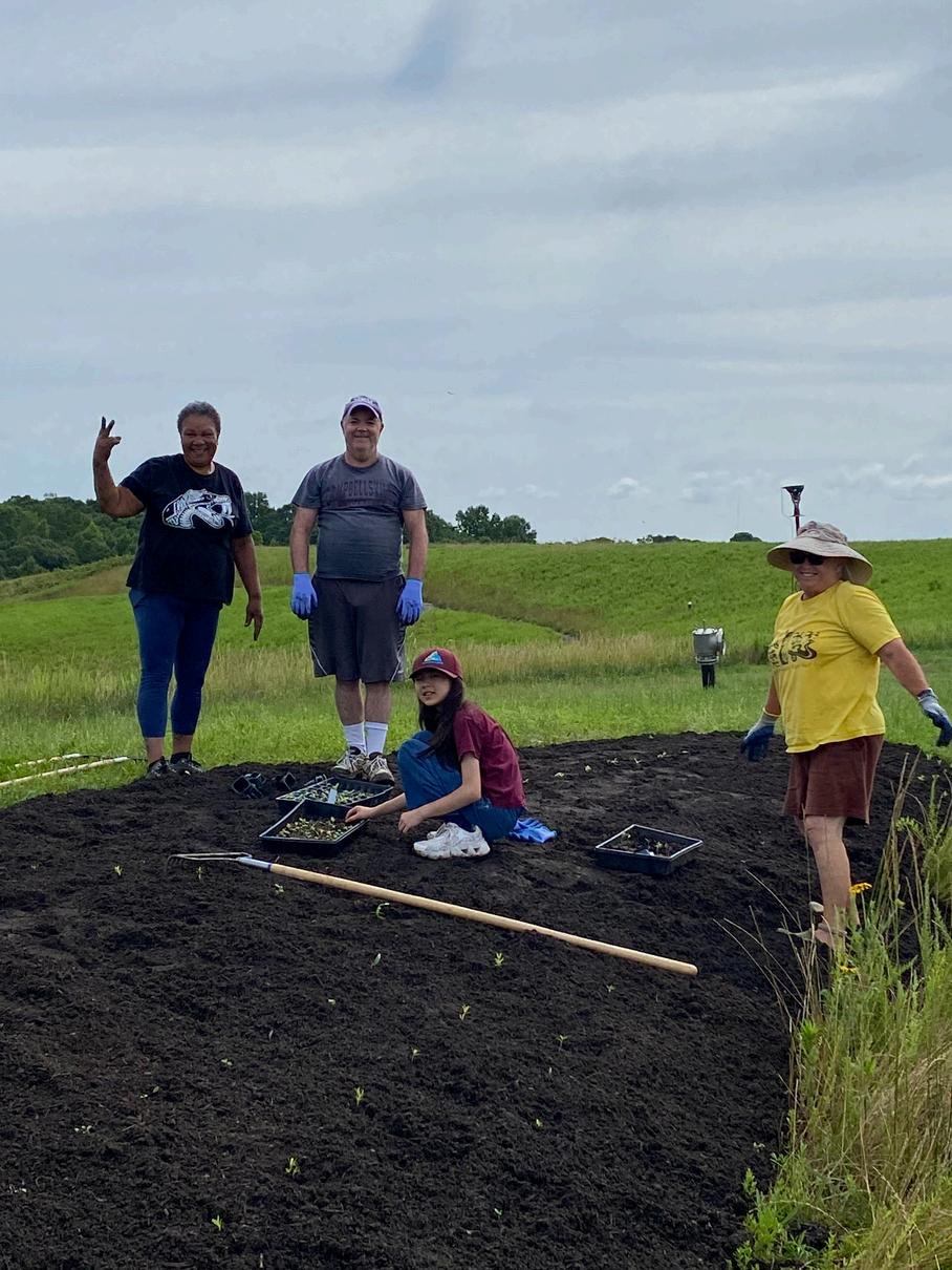 Bee City Committee Members planted native flowers for pollinators at the top of the closed landfill, connecting the flowers that are returning from previous year’s plantings. We are excited to see the growth and spread starting to happen and hope that one day, the landfill will be covered with these plants to assist with the restoration of our pollinator population. Also, many thanks to the Piedmont Environmental Center for providing the seedlings for planting as part of their annual Wildflower Sale!