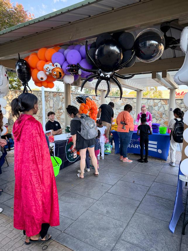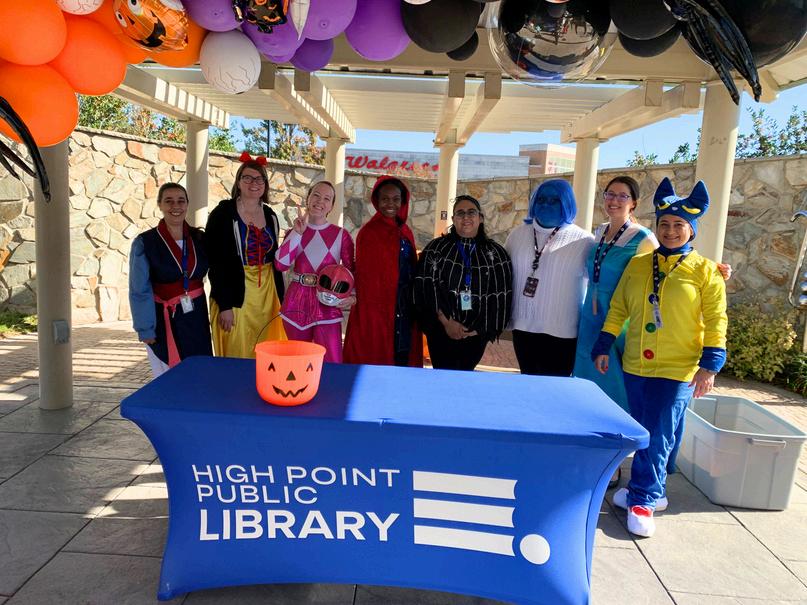 Children received a Halloween basket provided by the library and embarked on a spooky scavenger-style egg hunt throughout Arts and Education Plaza and the Rotary Club of High Point Sensory Garden at the High Point Public Library.