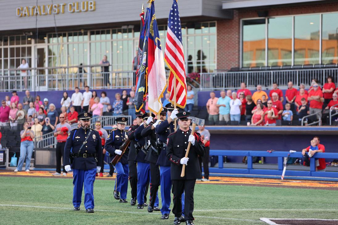More than 900 people attended the charity softball game at Truist Point. Firefighters and officers with the High Point Police Department compete in the annual event for bragging rights and to raise money for two nonprofit organizations - HPPD's Angels in Blue and the NC Fallen Firefighters Foundation. Dozens more people supported these causes by purchasing shirts and hats, and several local businesses and organizations helped sponsor the game.