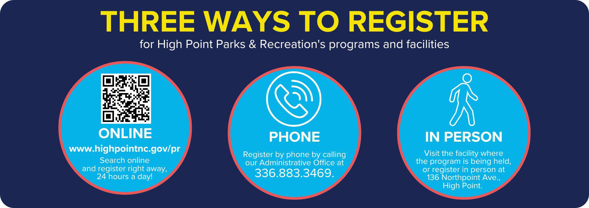 You can register for all programs by visiting our website or calling our office at 336.883.3469.