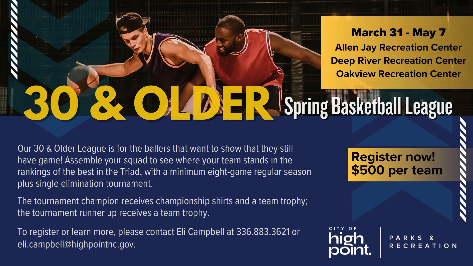 Start the new year off by joining the 2025 Big Three Challenger Basketball league, presented by High Point Parks & Recreation in partnership with the Greensboro and Kernersville Parks and Recreation departments! For more information about how to join our team, please contact Timpani Troxler at timpani.troxler@highpointnc.gov or call 336.883.3483.