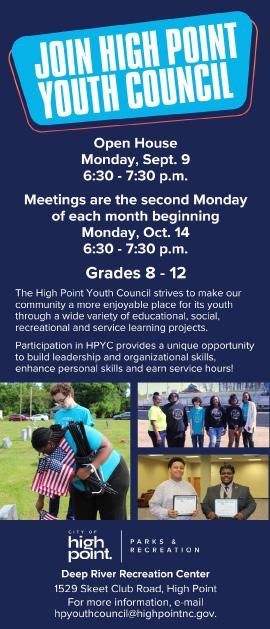 High Point Parks & Recreation enhances quality of life by providing opportunities through innovative programs, parks and facilities for present and future generations.