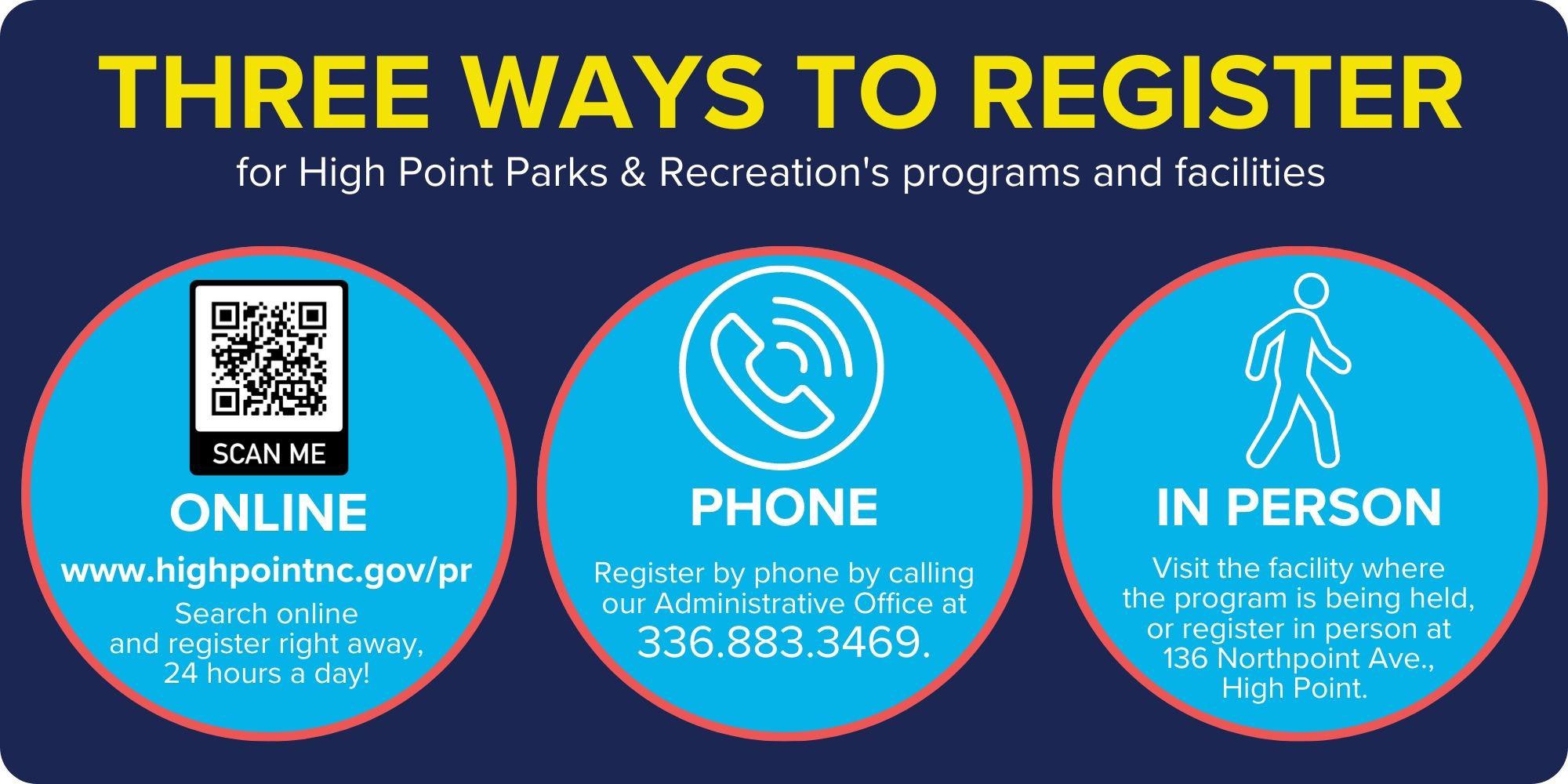 You can register for all programs by visiting our website or calling our office at 336.883.3469.
