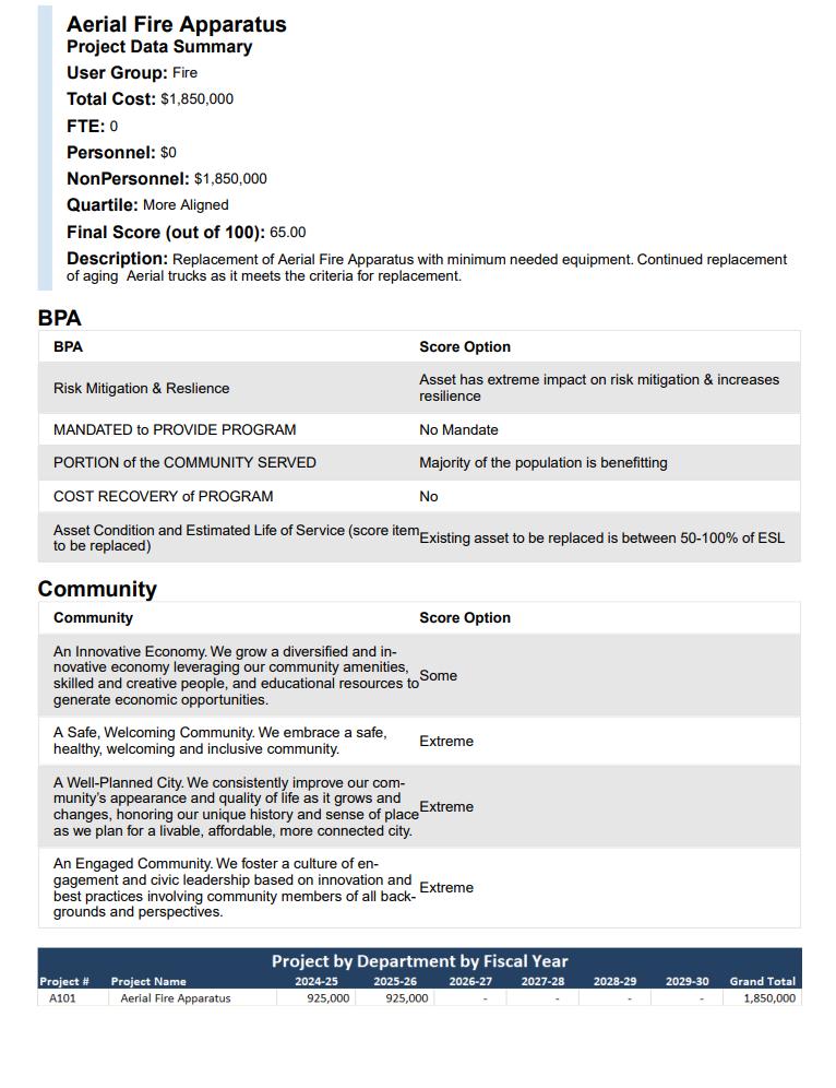 • A Reduction in Force of two filled, non-represented positions in the Fire Department, resulting in a savings of $138,585.