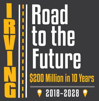 Visit CityofIrving.org/Road2Future for more information on the city’s ongoing road construction projects. n