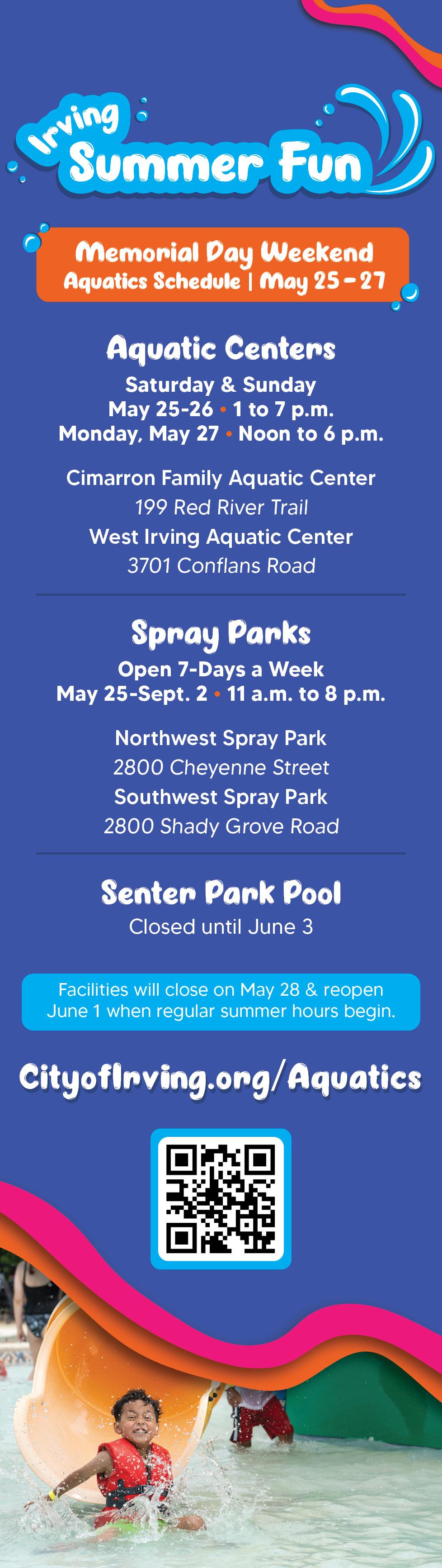 For the most up-to-date information, visit CityofIrving.org/Aquatics