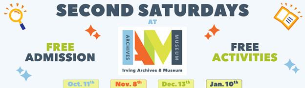 Enjoy Second Saturday with free admission and activities for everyone at the Irving Archives and Museum (IAM). Activities include artmaking, scavenger hunts, storytelling and other interactive experiences. All ages are welcome.