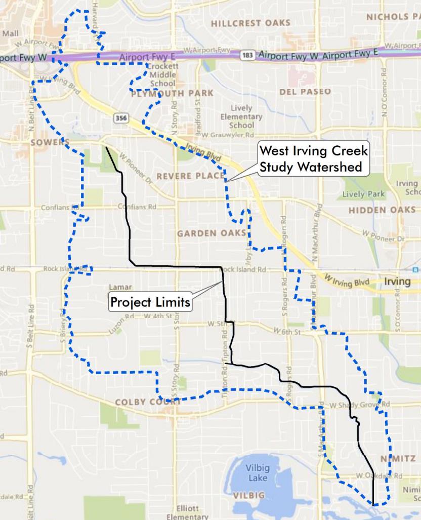 www.cityofirving.org/WestIrvingCreek ▪ Drains 15%+ of the City south of SH-183- over 3 square miles! ▪ Runs for 3+ miles from Wyche Park at Pioneer Road to outfall south of Oakdale Road ▪ Constructed in the 1960s ▪ Inadequate to meet current standards for 100-year flood capacity