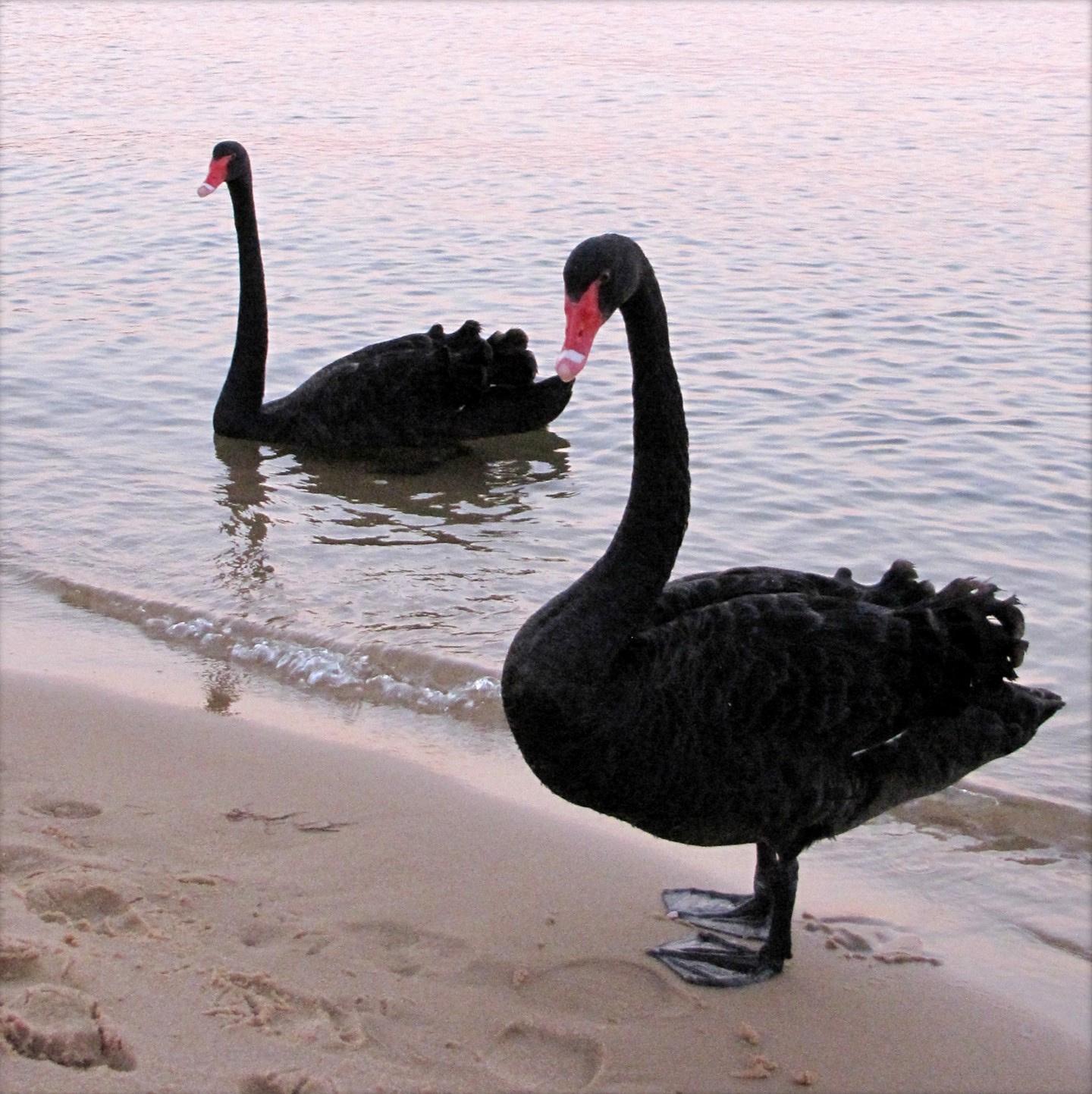 Felling the jarrah and getting it to the nearest mill was onerous but the real challenge was delivering it to the market A timber rail track was built to take the jarrah down to the Canning River to be transferred on to flat-bottomed barges We like to think the black swans paused to watch our hills jarrah glide slowly by The following piece, ‘Black Swans on the Swan’ captures the scene.