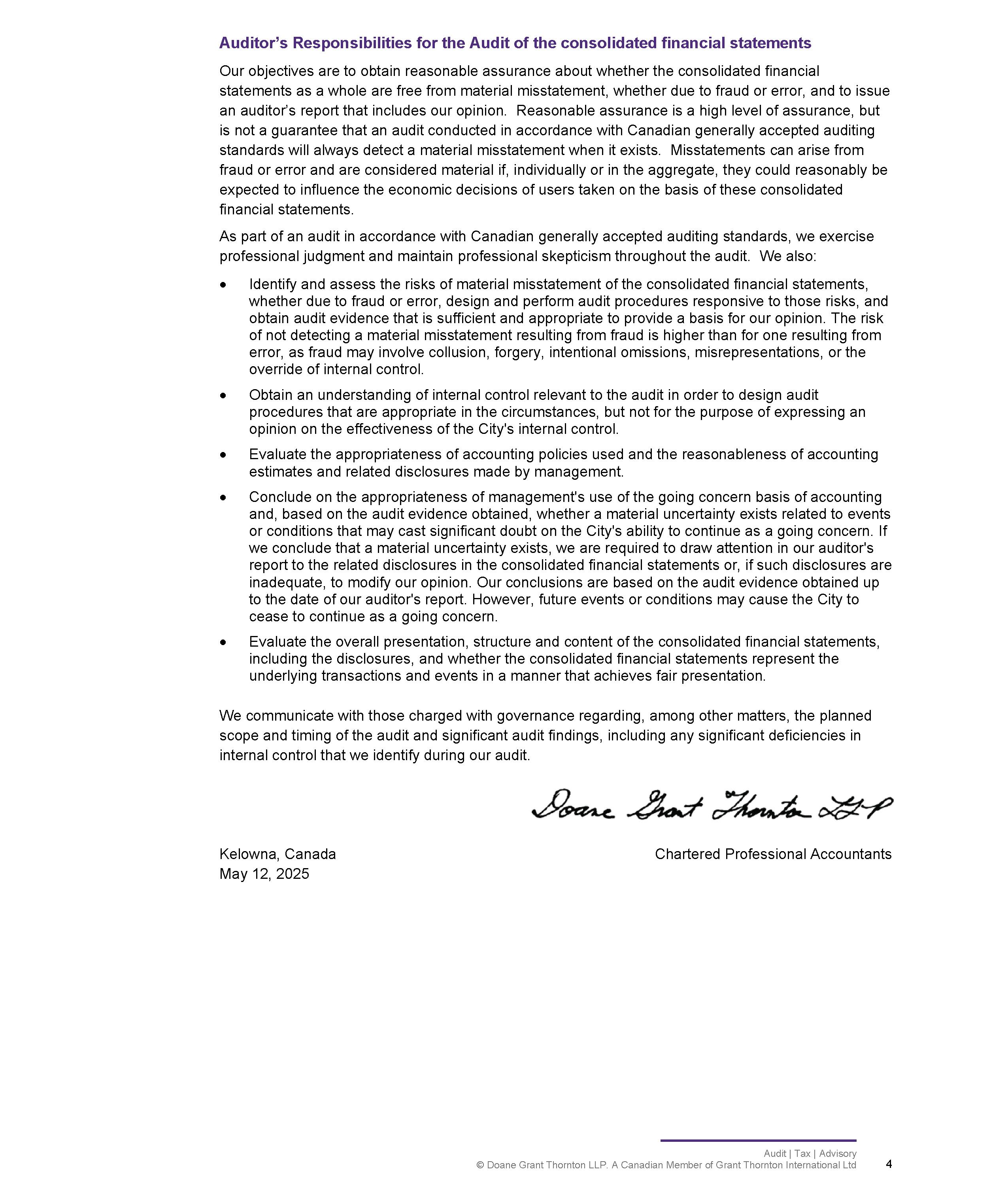 Looking ahead, we remain dedicated to building a stronger, more resilient Kelowna. Our focus on active financial management, digital transformation, and service-based budgeting will guide our efforts to meet the evolving needs of our community. Together, we will continue to innovate, collaborate, and lead responsibly to create a city that makes us all proud.
