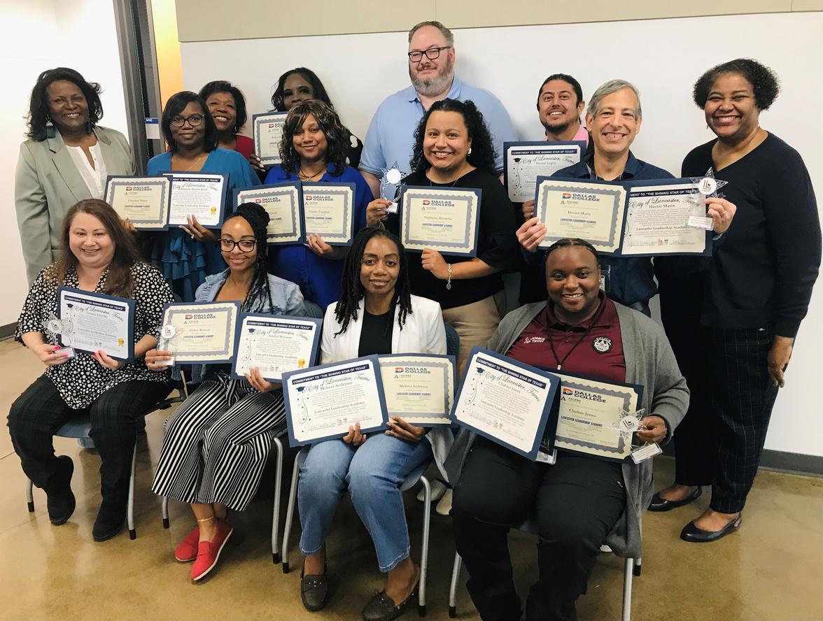 THE CITY OF LANCASTER PARTNERED WITH DALLAS COLLEGE - CEDAR VALLEY CAMPUS TO PROVIDE A MONTHLY LEADERSHIP TRAINING. THE ACADEMY PROVIDES LEADERSHIP DEVELOPMENT FOR INTERESTED EMPLOYEES WHO HAVE DEMONSTRATED A DESIRE TO EXPAND THEIR PEOPLE SKILLS IN THE WORKPLACE.