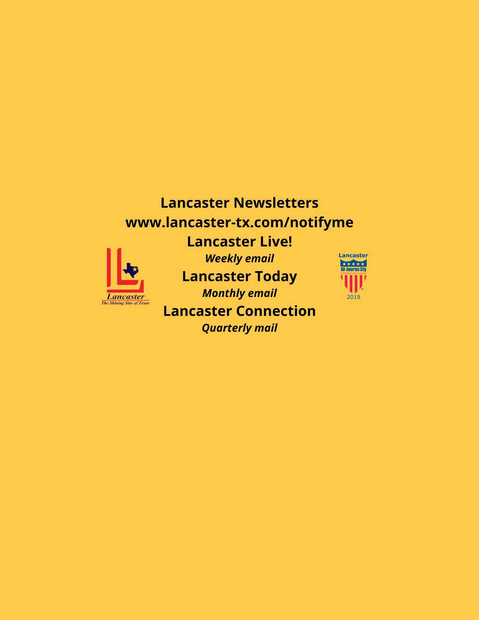 211 N. Henry St. * Lancaster, TX 75146* 972.218.1300 * 972.218.0919 FAX www.lancaster-tx.com