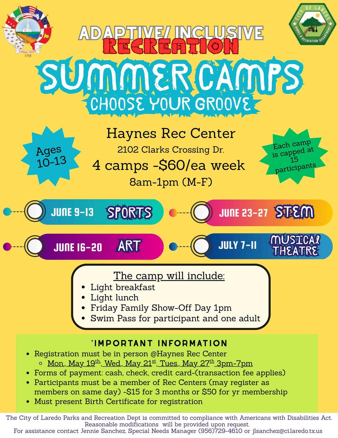 his summer, the City of Laredo Parks & Recreation Department is proud to offer adaptive and inclusive programming designed especially for children with disabilities giving every child a chance to grow, play, and shine