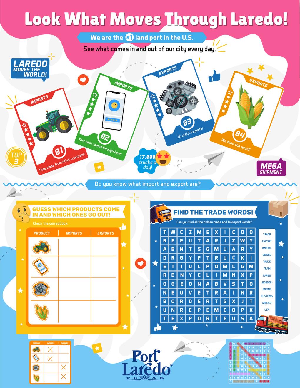 En la soleada ciudad de Laredo, donde el río fluye con fuerza, hay un lugar concurrido donde los camiones corren uno al lado del otro. Se llama Puerto Laredo,dondelaacciónnosedetiene.¡Eselpuertointeriornúmerouno,dondeel comercioesclave!Desdeteléfonosyjugueteshastalacomidaqueconsumimos, muchascosaspasanpornuestrascalles.