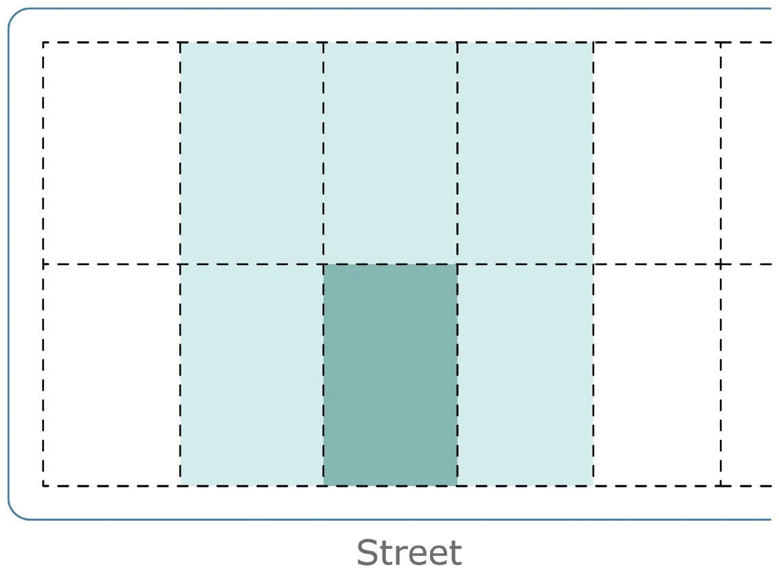 Yard, Zero Side Development permitted to be built on the side property boundaries of the site with no required side yard.