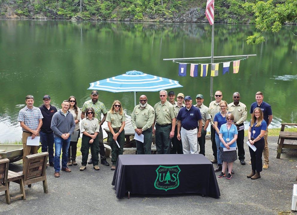 LEFT: The Pedlar River Watershed Restoration effort was launched with a gathering of U.S. Forest Service officials, LWR staff, and others, at the Pedlar Reservoir on June 12, 2024.