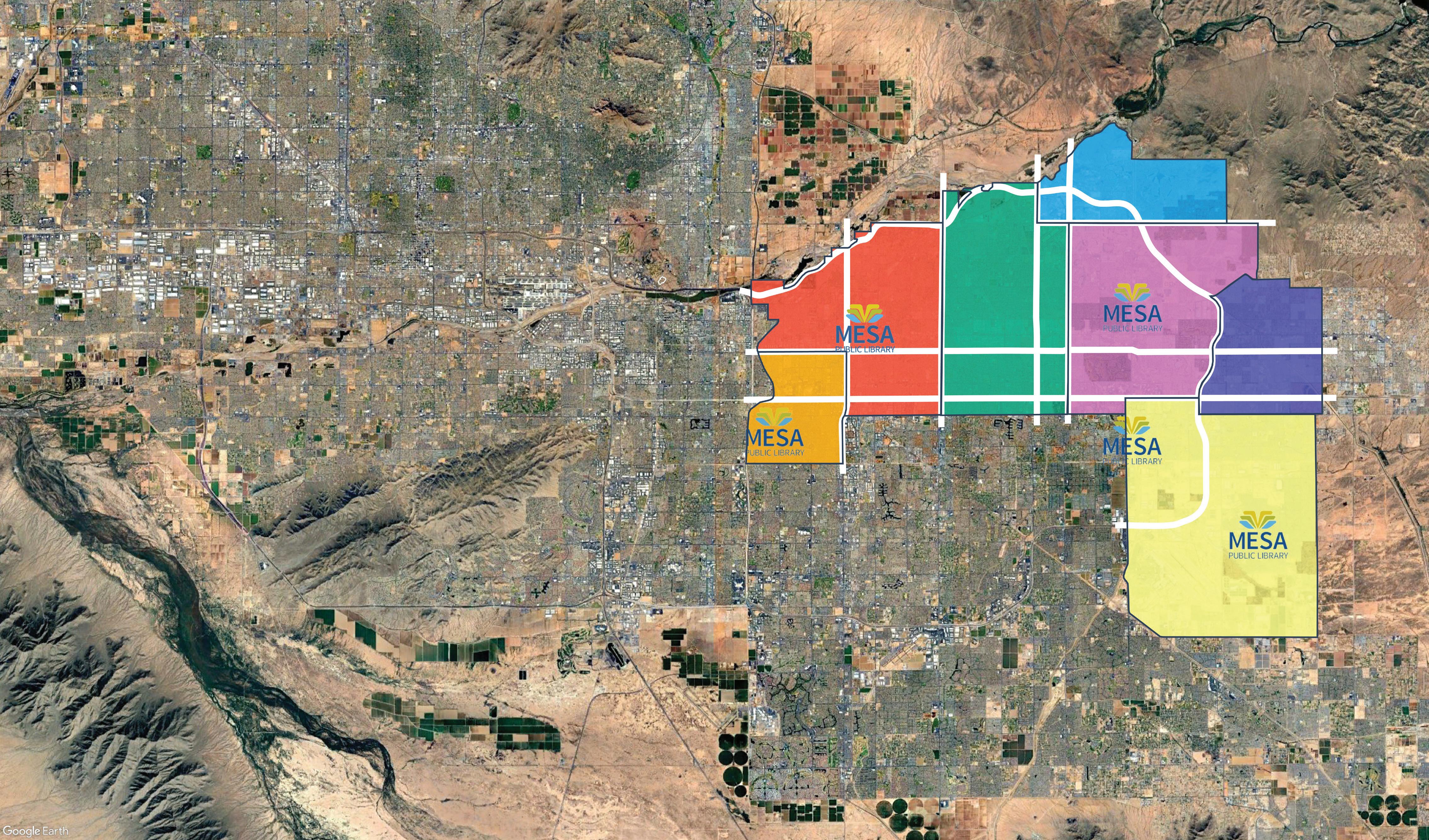 The Mesa Library System consists of four existing libraries: Main (MA), Red Mountain (RM), Dobson Ranch (DR), and Mesa Express Library (MEL). A fifth location, Gateway (GW) is under construction and scheduled to open in the fall of 2025.