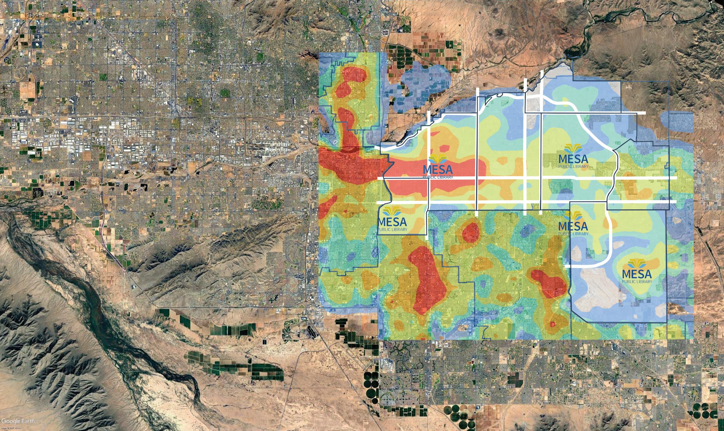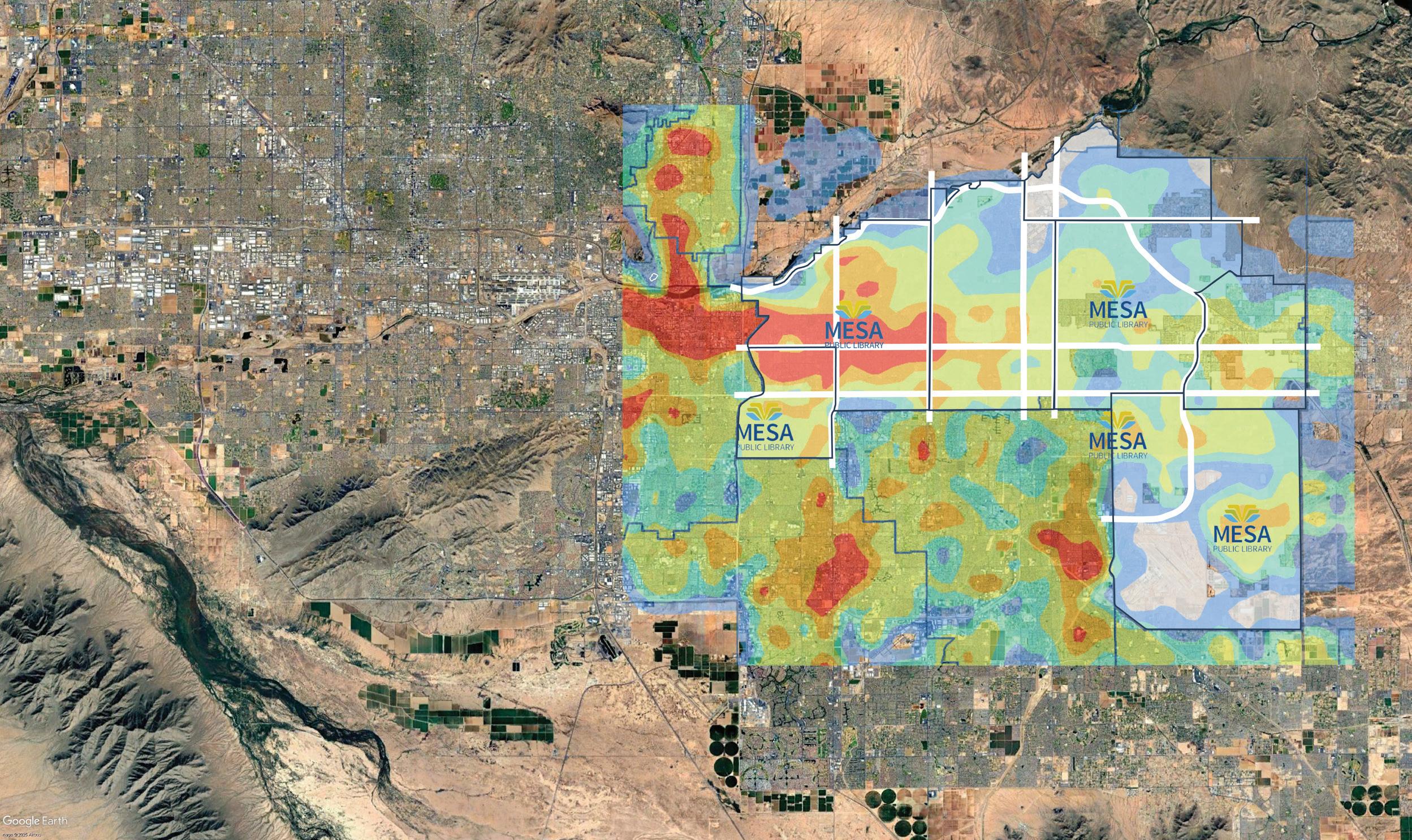 In collaboration with Berry Dunn and City of Mesa staff, the team conducted a comprehensive analysis of geographic and demographic data to identify existing service gaps and potential areas of library services needs within the community. This analysis incorporated population growth projections, demographic trends, and emerging community needs to forecast future library service demands.