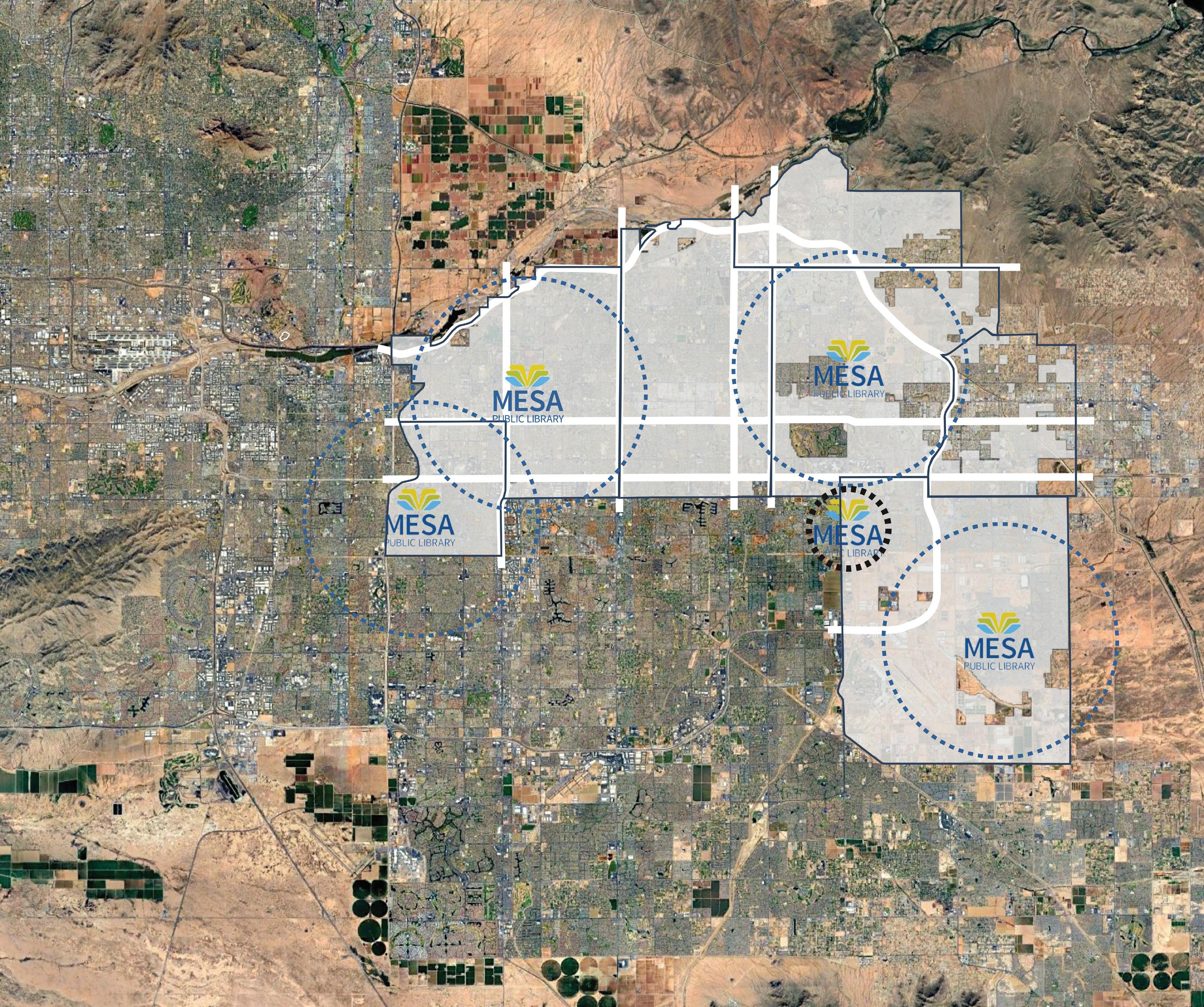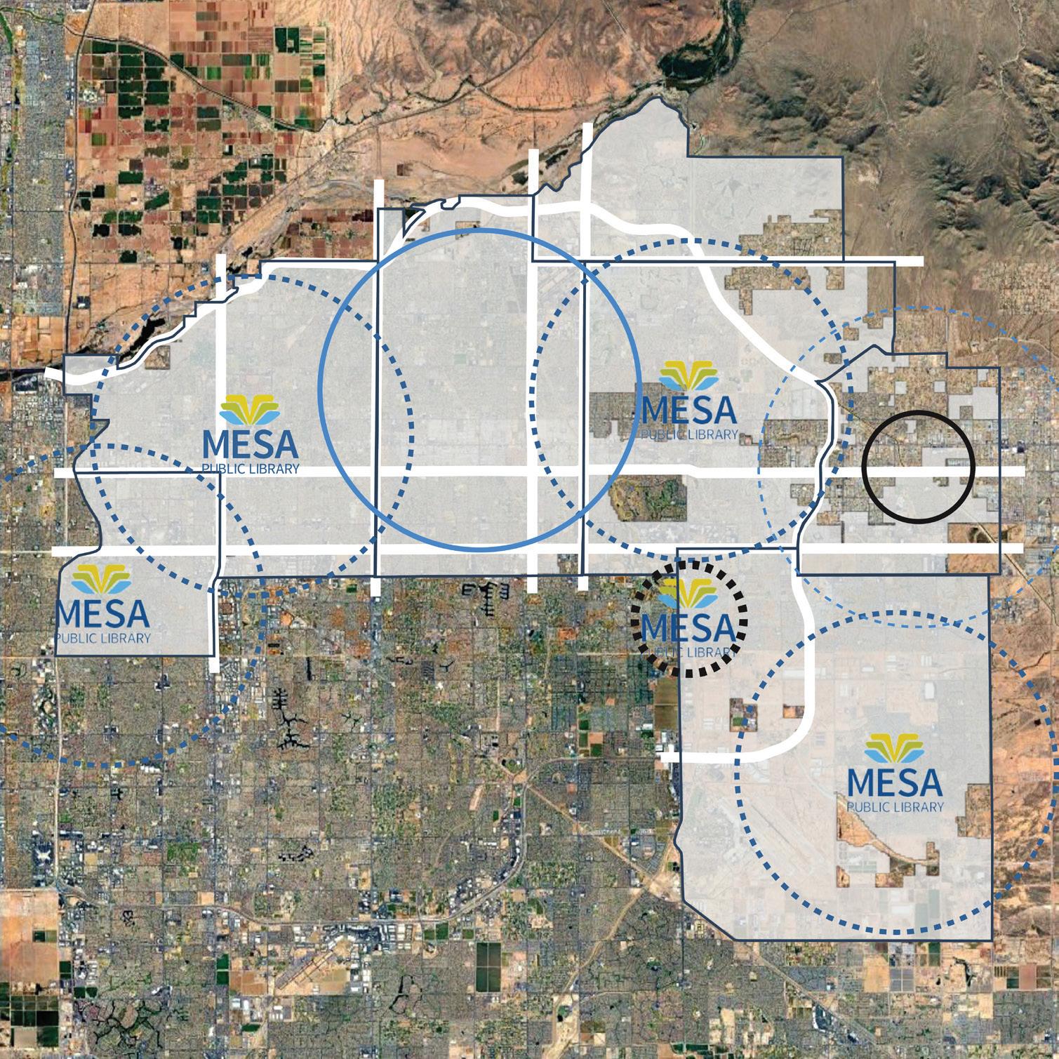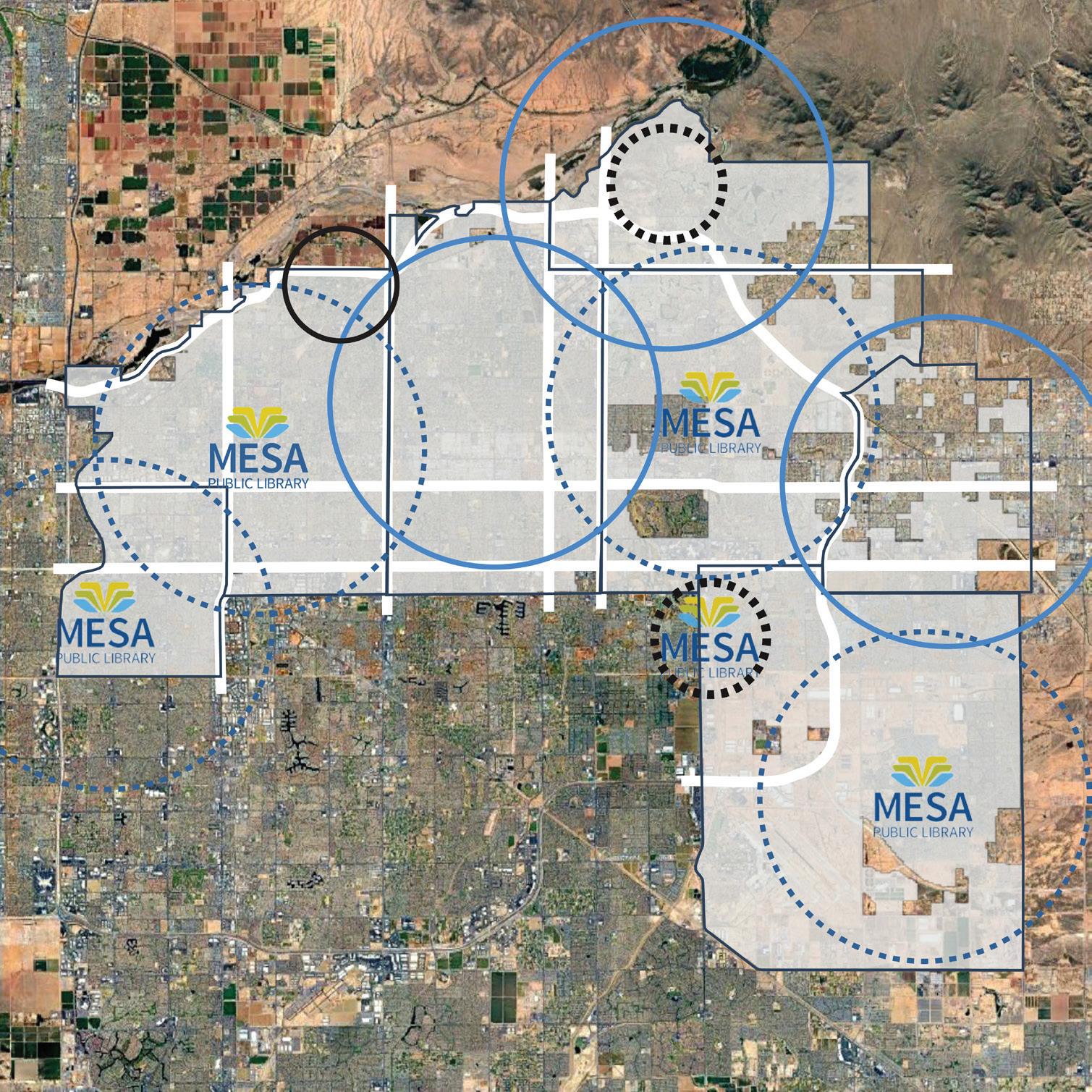 The proposed future locations documented on the following pages provide a model for growth over the next 20 years, closing existing service gaps and reinforcing the existing programs and services the Mesa public Library system provides to the residents of Mesa.