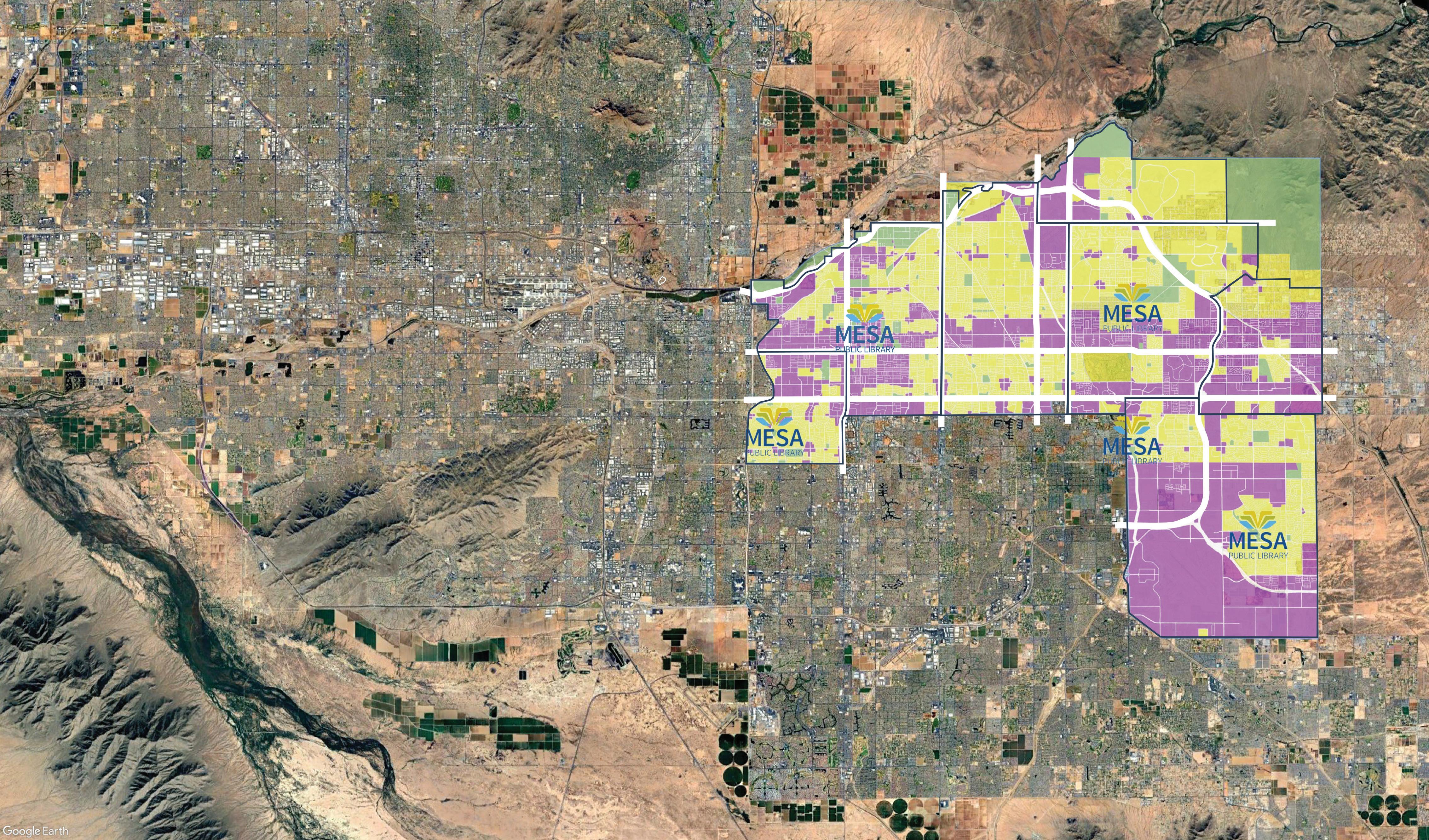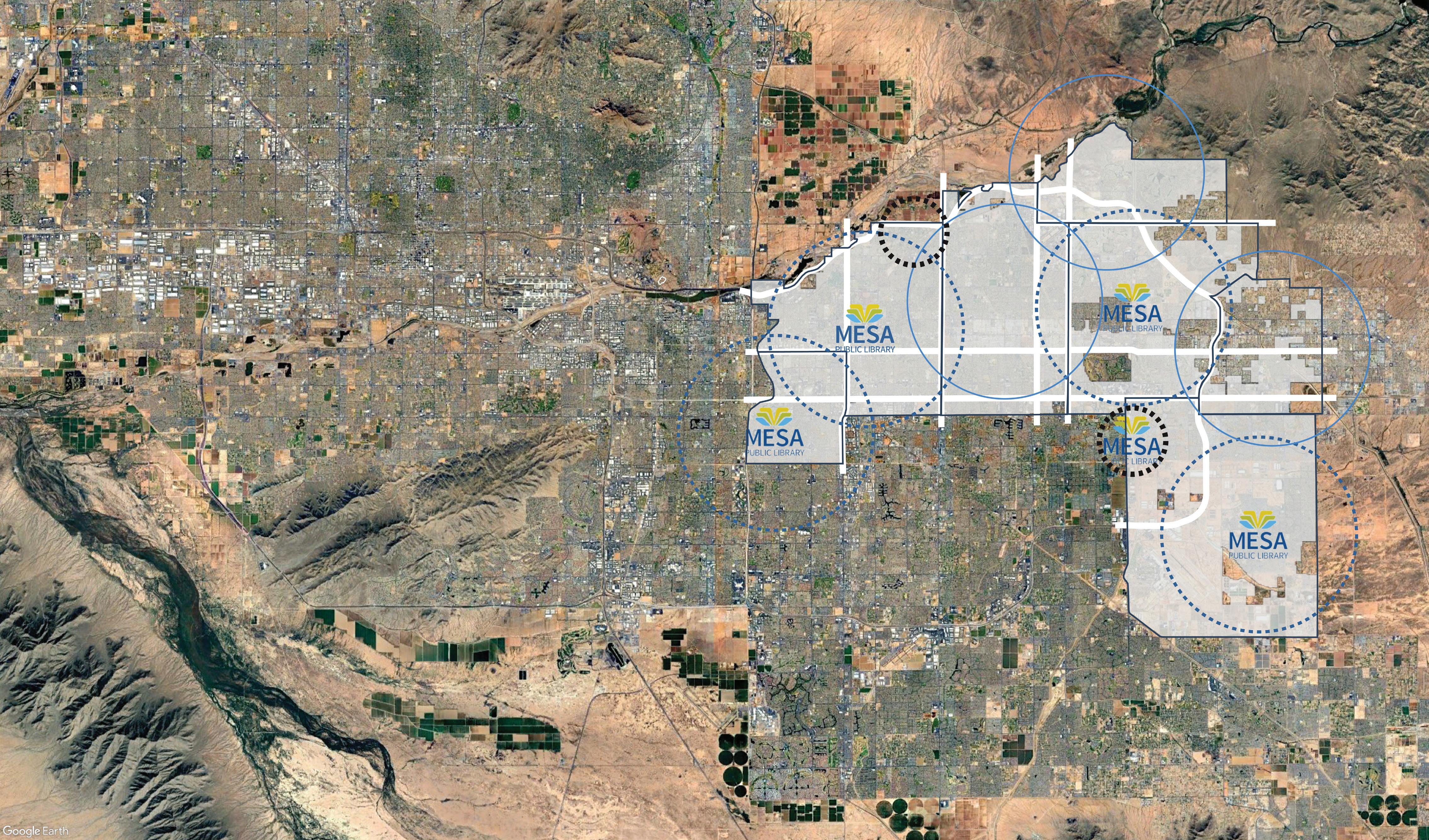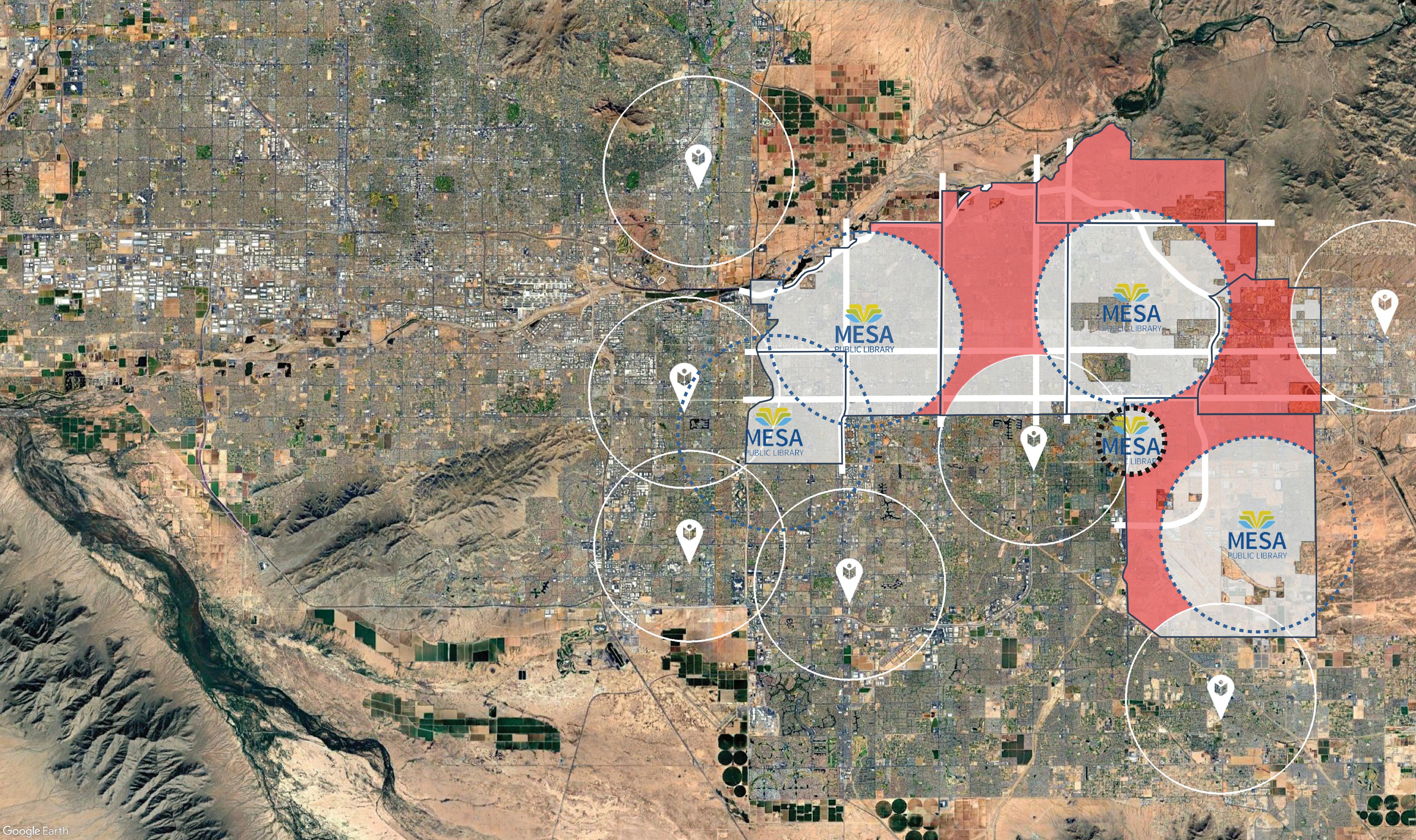 The proposed future locations documented on the following pages provide a model for growth over the next 20 years, closing existing service gaps and reinforcing the existing programs and services the Mesa public Library system provides to the residents of Mesa.
