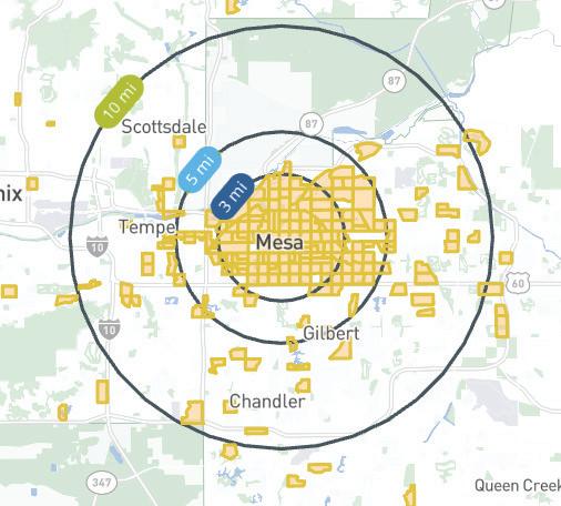 When considering new branch locations within the identified zones, the Mesa General Plan was referenced to for placetype designations and growth strategies.