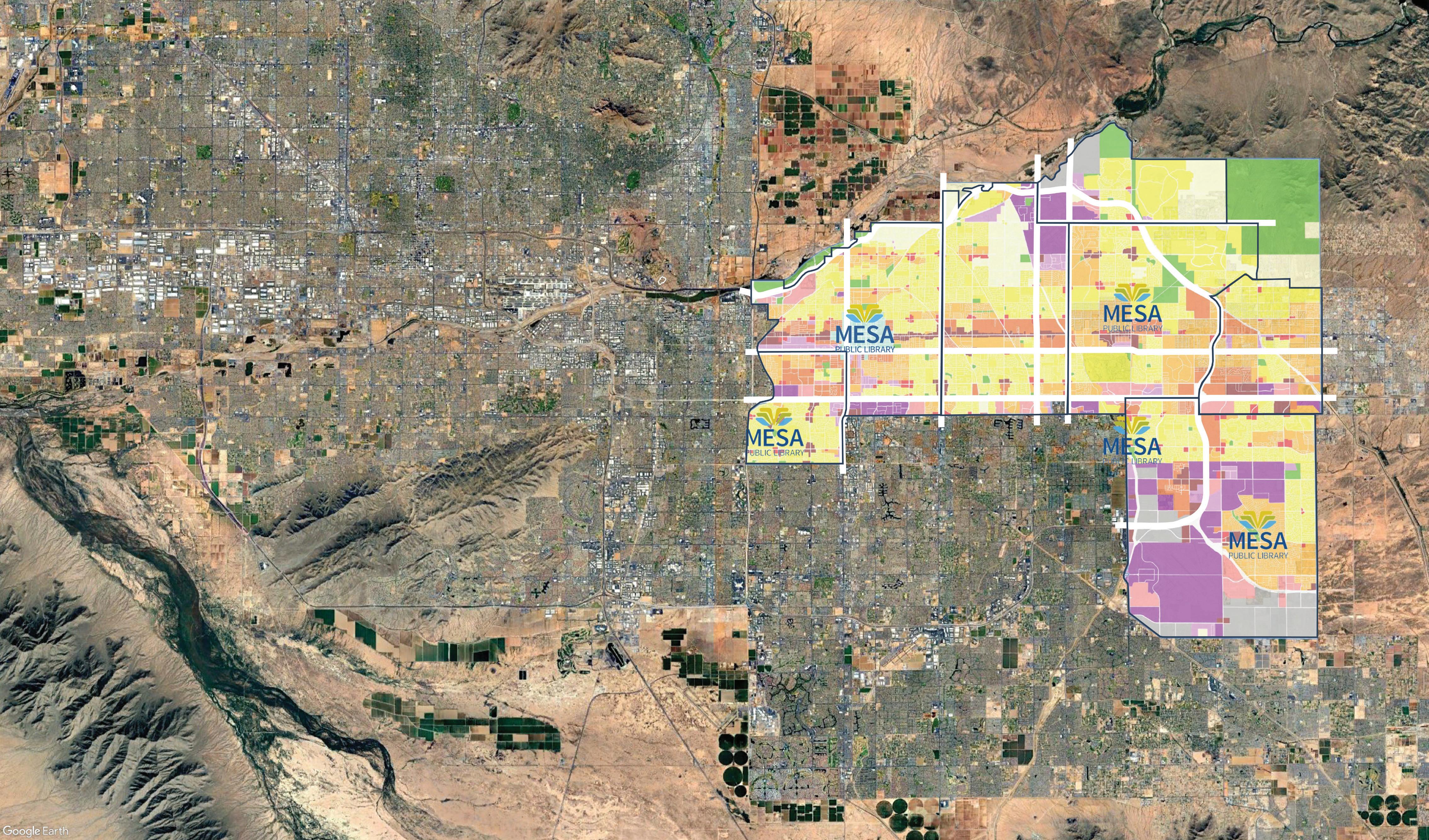 At the end of the 20-year master plan the Mesa Public Library System will have closed significant gaps in the current service areas. It will be achieved through phased sustainable growth using traditional and innovative models. In addition to upgrading the existing facilities the system will include: