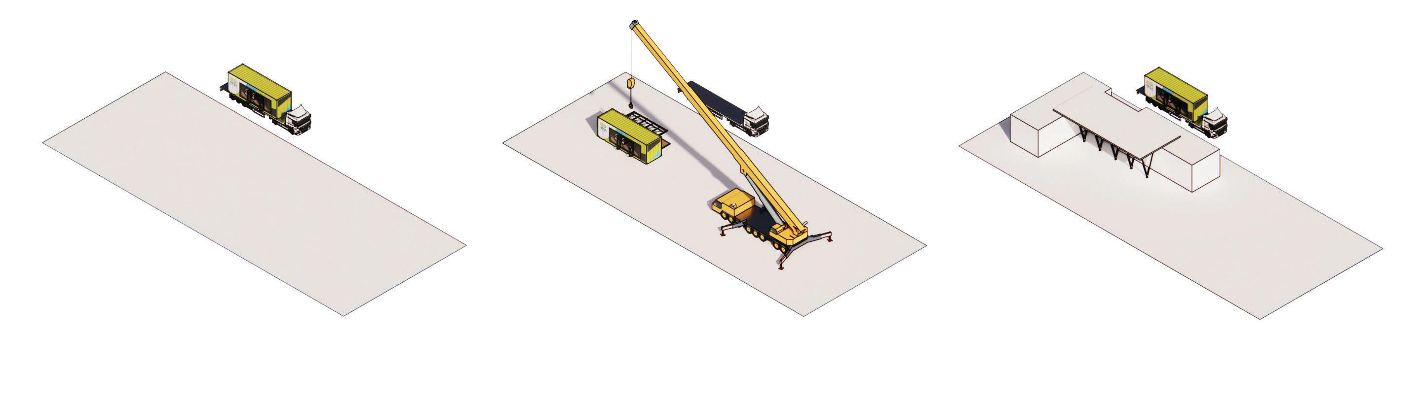 The Prefab Library is designed to be temporary and requires minimal labor. Depending on the site, additional modules can be added to expand the library and services.