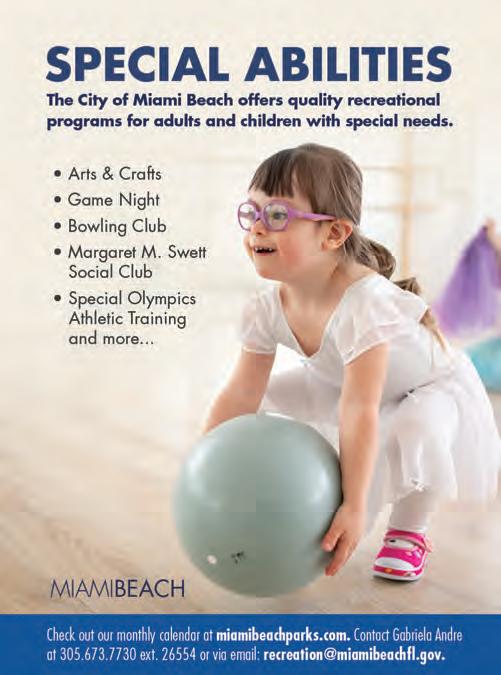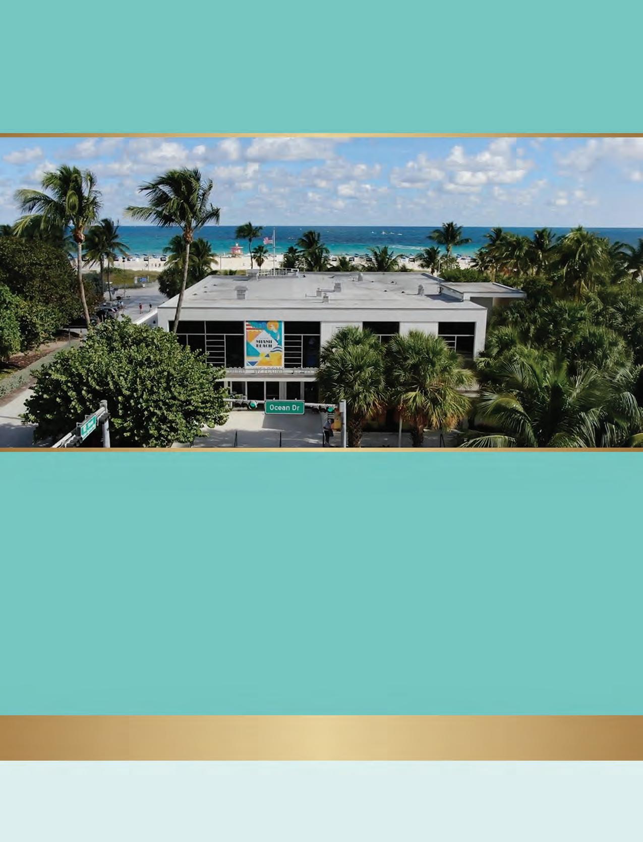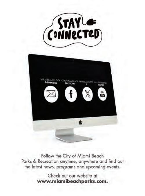 To request this material in alternate format, sign language interpreter (5-day notice required), information on access for persons with disabilities, and/or any accommodation to review any document or participate in any city-sponsored proceedings, call 305.604.2ADA (2232) (voice), select 1 (English) or 2 (Spanish) and leave a message with your request. TTY users may call via 711 (Florida Relay Service). You can also make requests online at www.miamibeachfl. gov/ada by selecting ADA request. Para solicitar esta publicación en formato alternativo, intérprete de lenguaje de señas (5 días de aviso previo), información de acceso para personas con discapacidades, y/o cualquier ajuste para revisar documentos o participar en acontecimientos patrocinados por la ciudad, llame al 305.604.2ADA (2232) (voz), seleccione 1 para Inglés o 2 para Español, y deje un mensaje con su solicitud. Usuarios de teléfonos de texto (TTY) pueden llamar a través del 711 (Servicio de Retransmisión de la Florida). También puede hacer solicitudes en línea en www.miamibeachfl.gov/ada y seleccione “ADA request.”