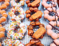 Traditional donut shop, serving fresh coffee, smoothies, and all kinds of donuts to go!