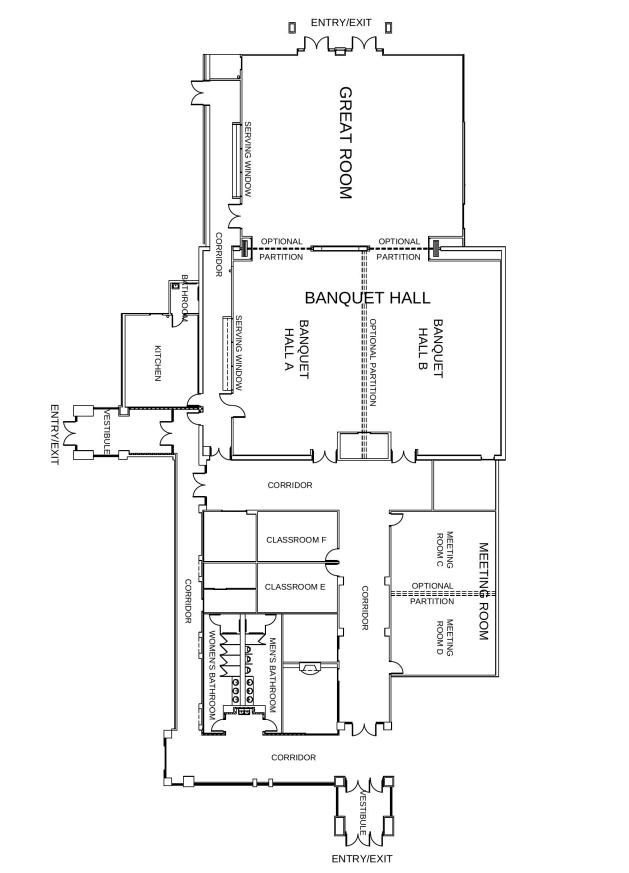 Includes use of the Great Room, Full Banquet Hall, Catering Kitchen, Classroom and the Gazebo