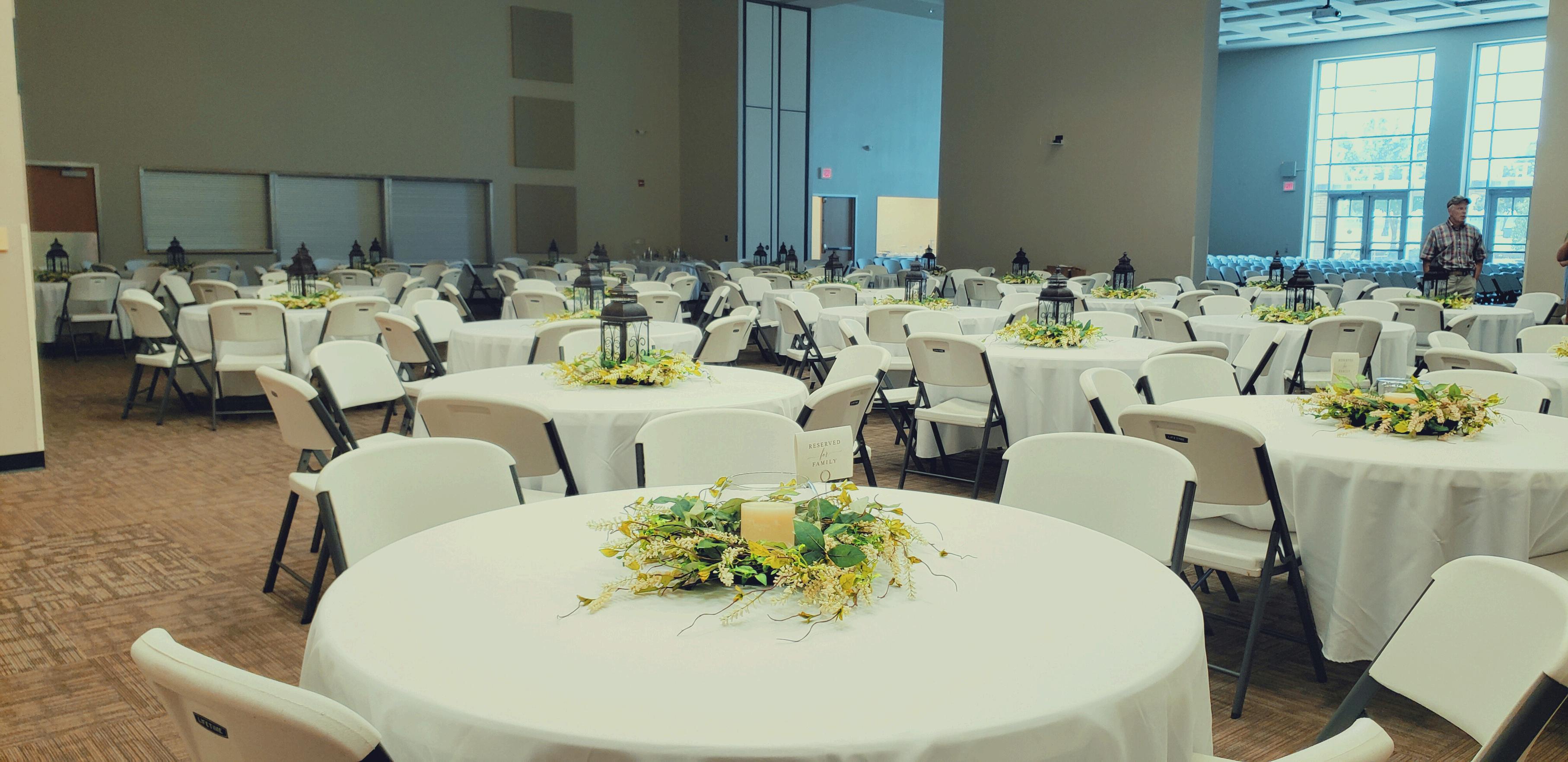Tables and chairs must be cleaned and wiped down. All food must be removed from the premises. The room needs to be returned to the same condition it was in prior to the event.