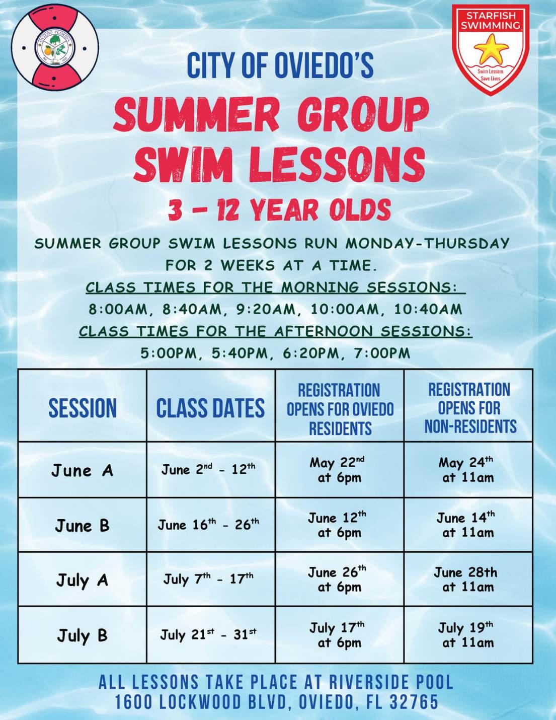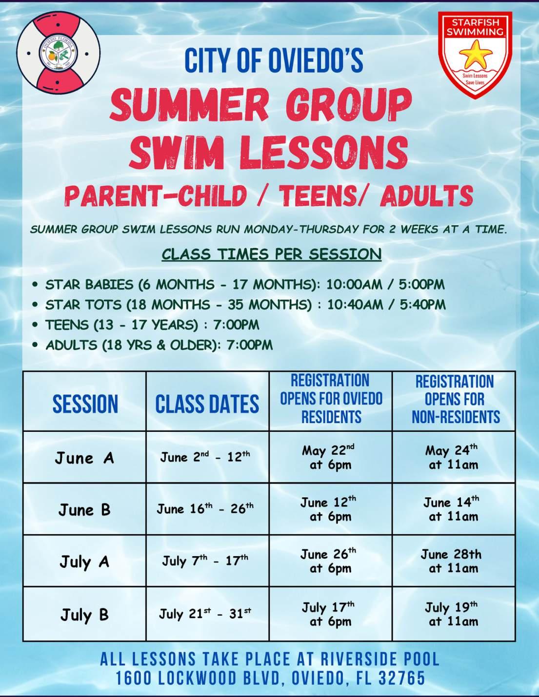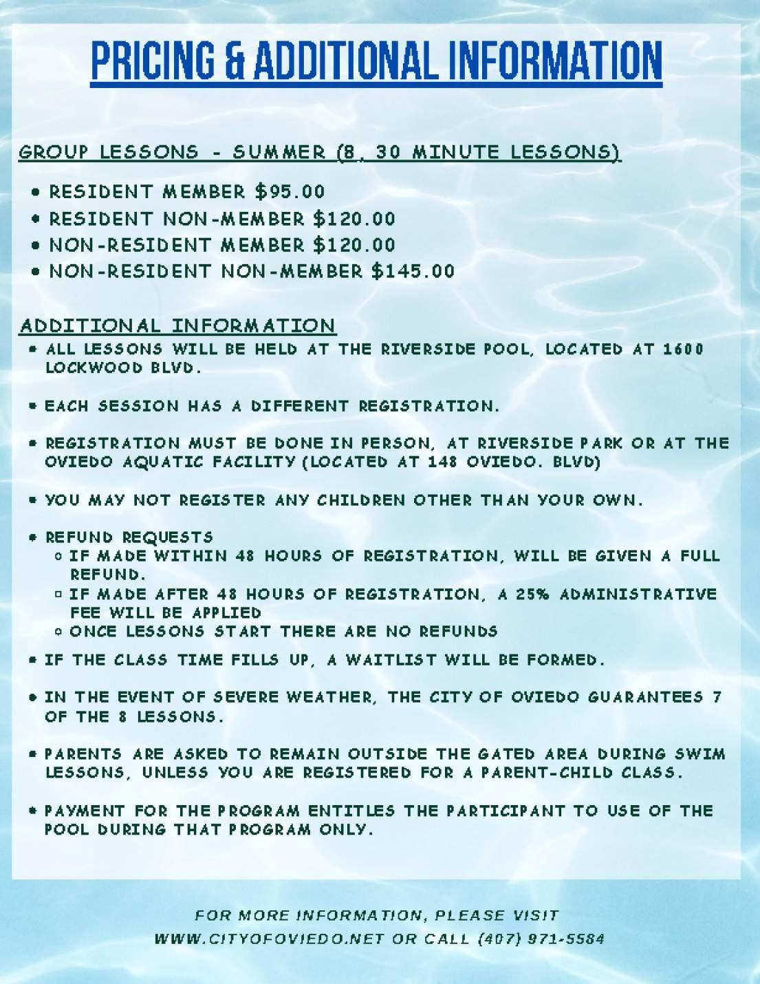 For more information about prices and lessons: www.cityofoviedo.net - Click Recreation and Aquatics
