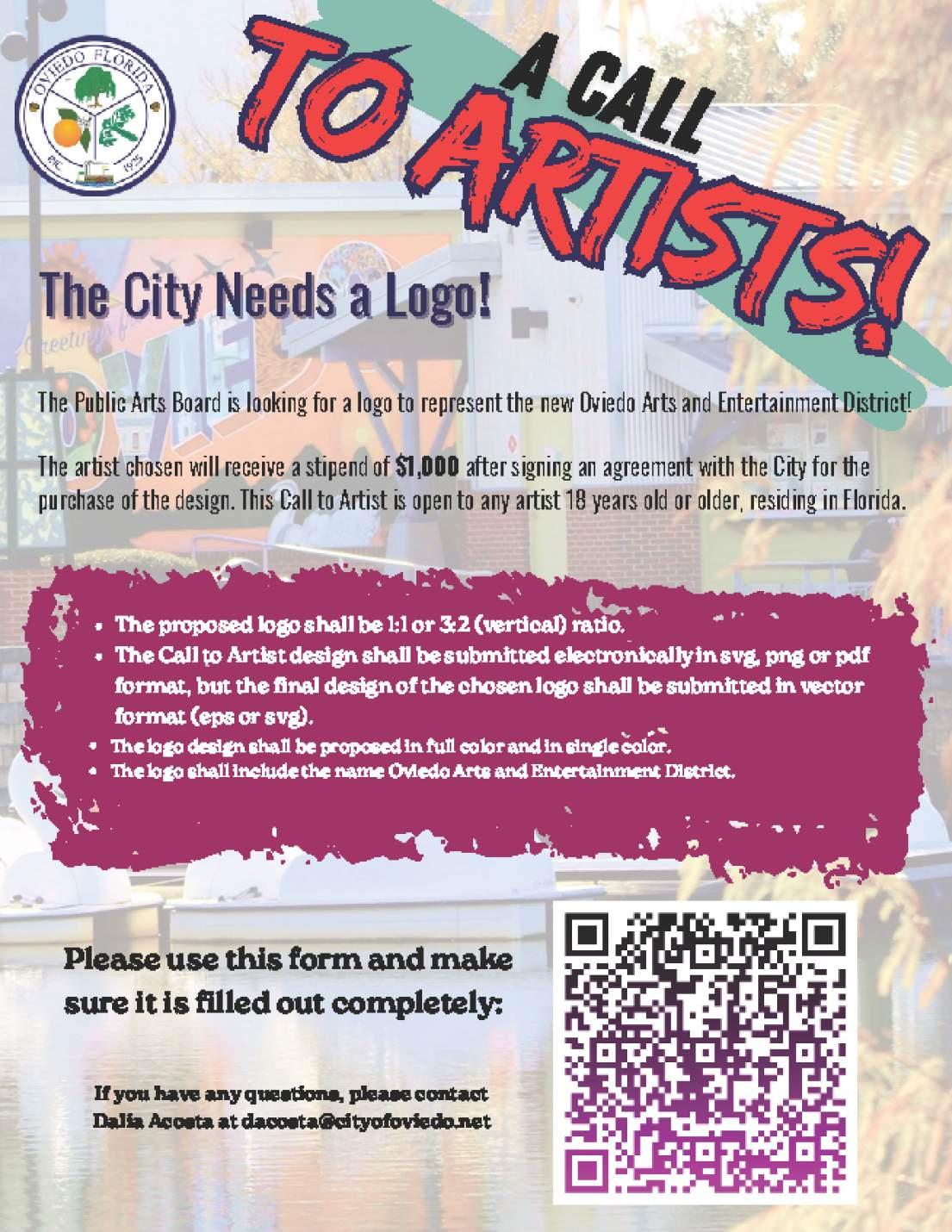 The Public Arts Board is looking for alogo to represent the new Oviedo Arts and Entertainment DistricU