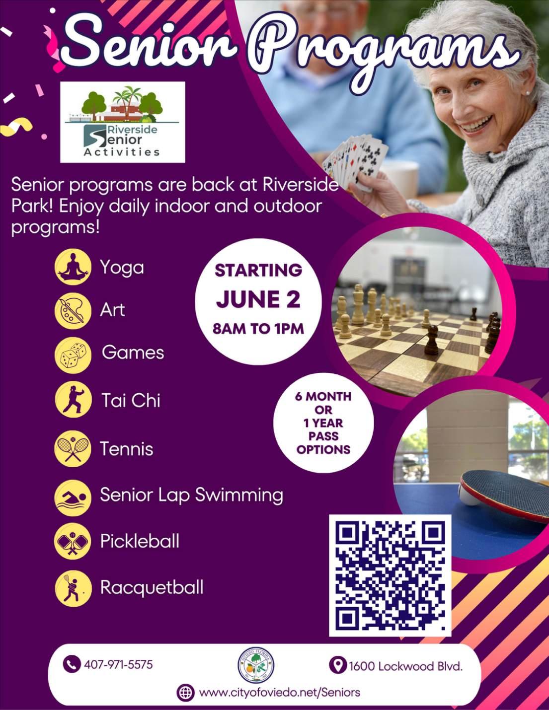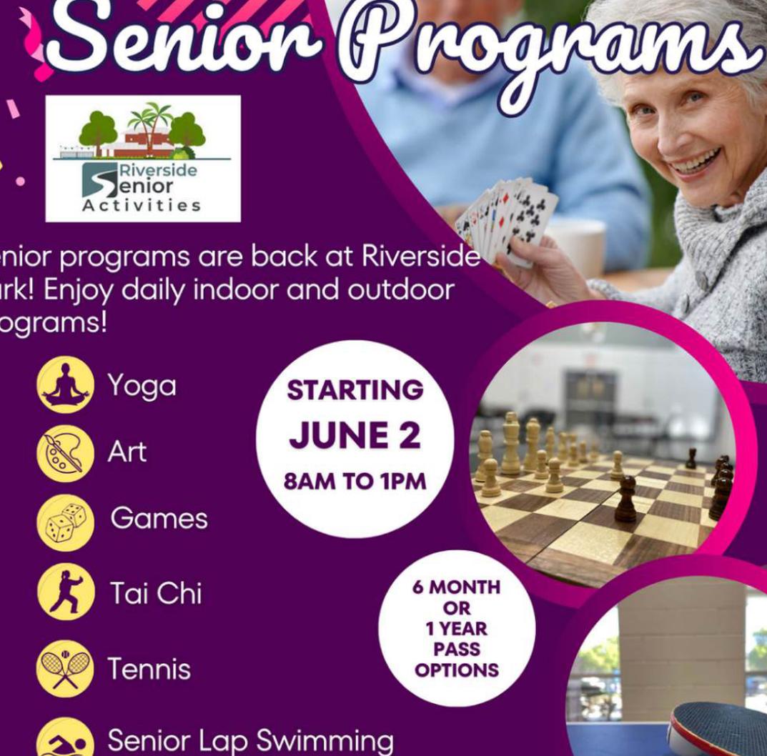 Join us at Riverside Park on select (once a month) Wednesdays from 12-1pm. Begins on 7/9/25. Drop in rate for senior programs is S5 or ask us about our pass options!