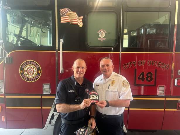 Christopher St. John is originally from New Jersey, but has lived in Oviedo for 30 years. He was with the Orlando Police Department for 23 years before retiring. He wanted to work for the Oviedo Police Department and come back to policing to serve the community where he lives. His son Justin, who is also looking at a potential career in law enforcement, pinned St. John after he was sworn in.