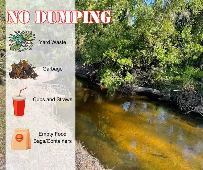 Let's keep our waterways clean! If you see any intentional dumping, please let us know! Not only is dumping unsightly, but it is also illegal & can contaminate waterways. Please do your part and pick up after yourselves. Use our FIX IT FORM to report any litter you may see.