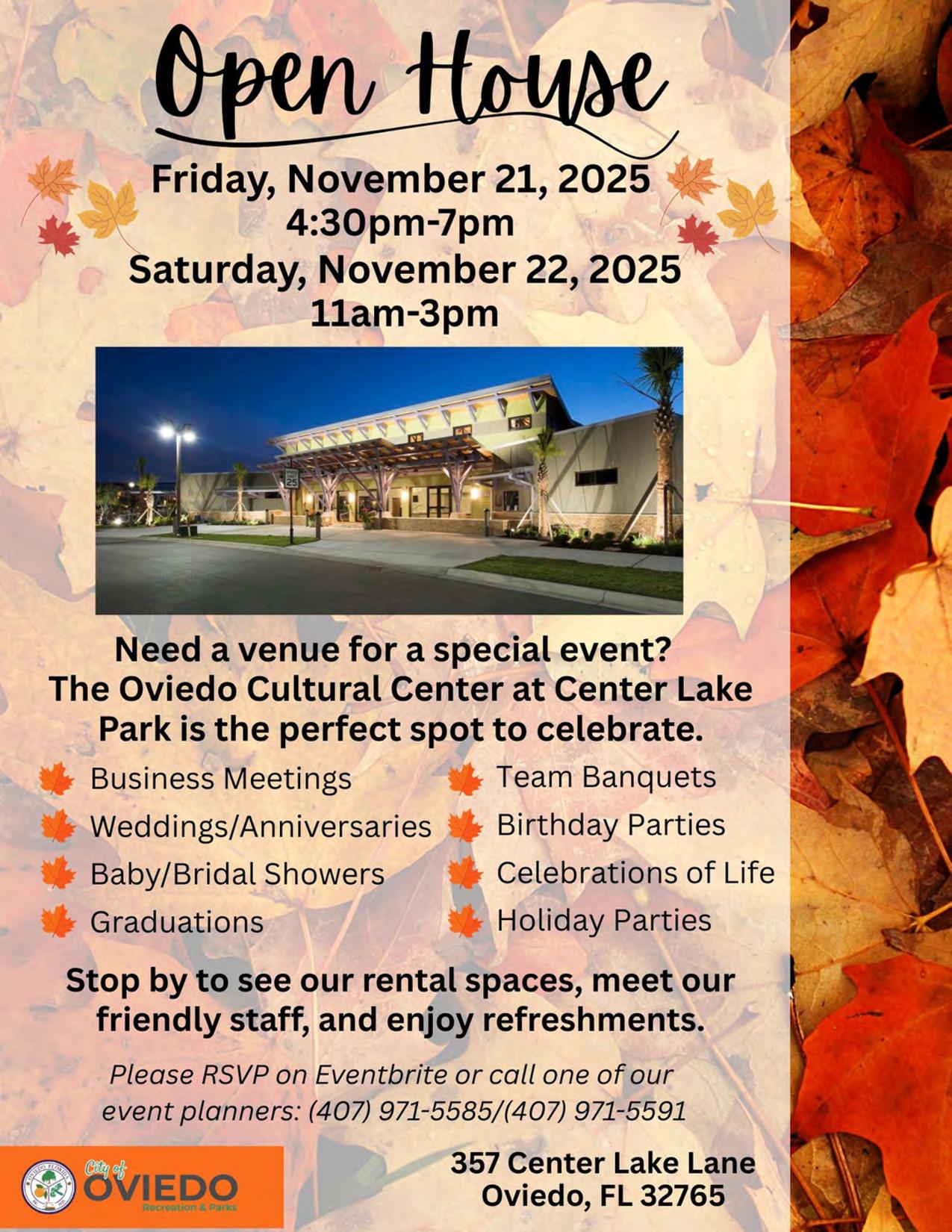 Do you have an event you're planning and looking for a venue to host it? The Oviedo Cultural Center is the perfect place?