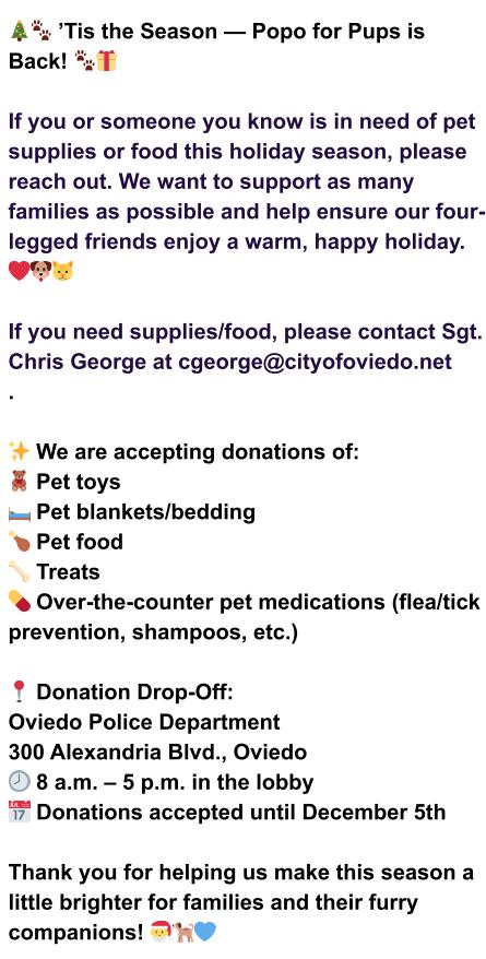 Anyone who has questions can call the City of Oviedo at 407-971-5691