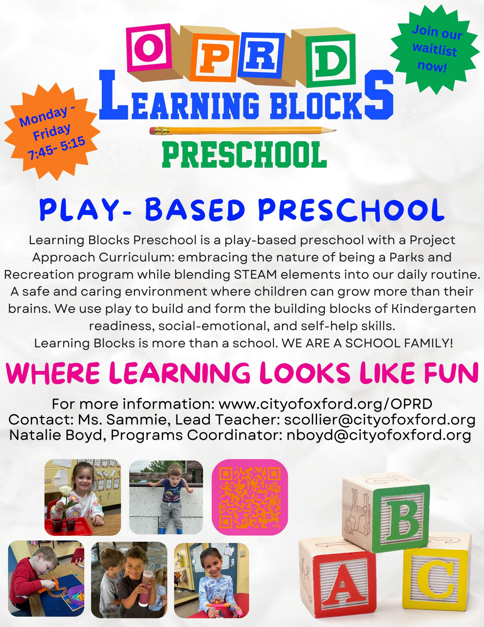 For more information and to register visit www.cityofoxford.org/OPRD or scan the QR Code
