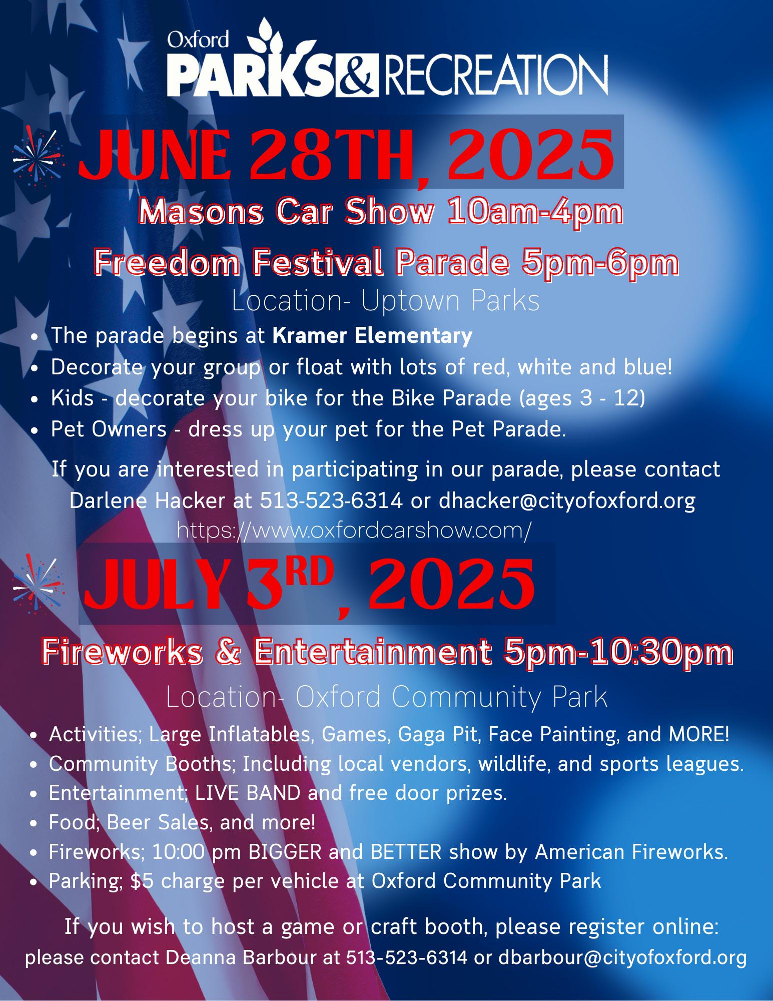 July 3 | Freedom Festival (5 - 10 pm at Oxford Community Park)