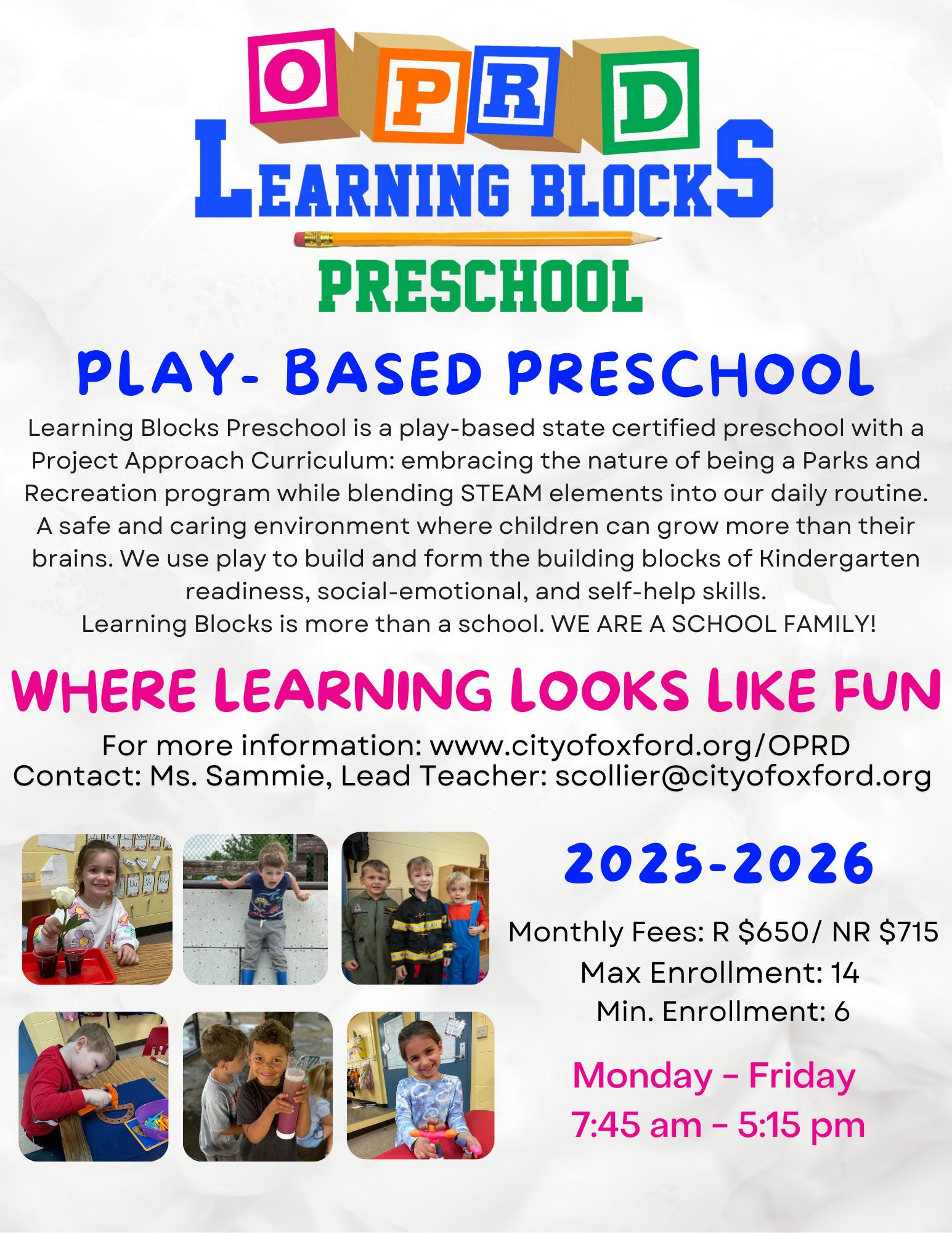 You may register for most programs online. Register at www.cityofoxford.org/OPRD.