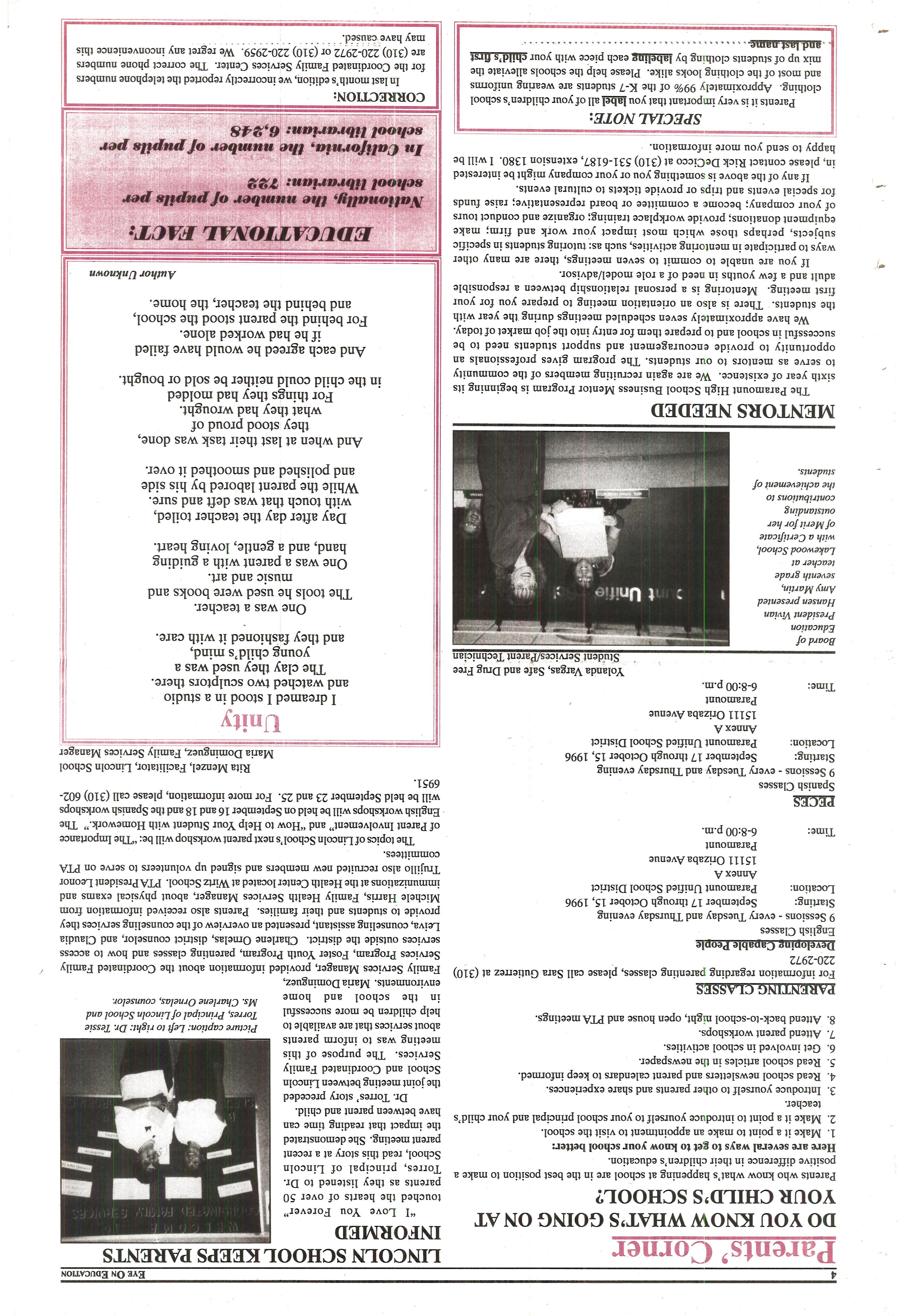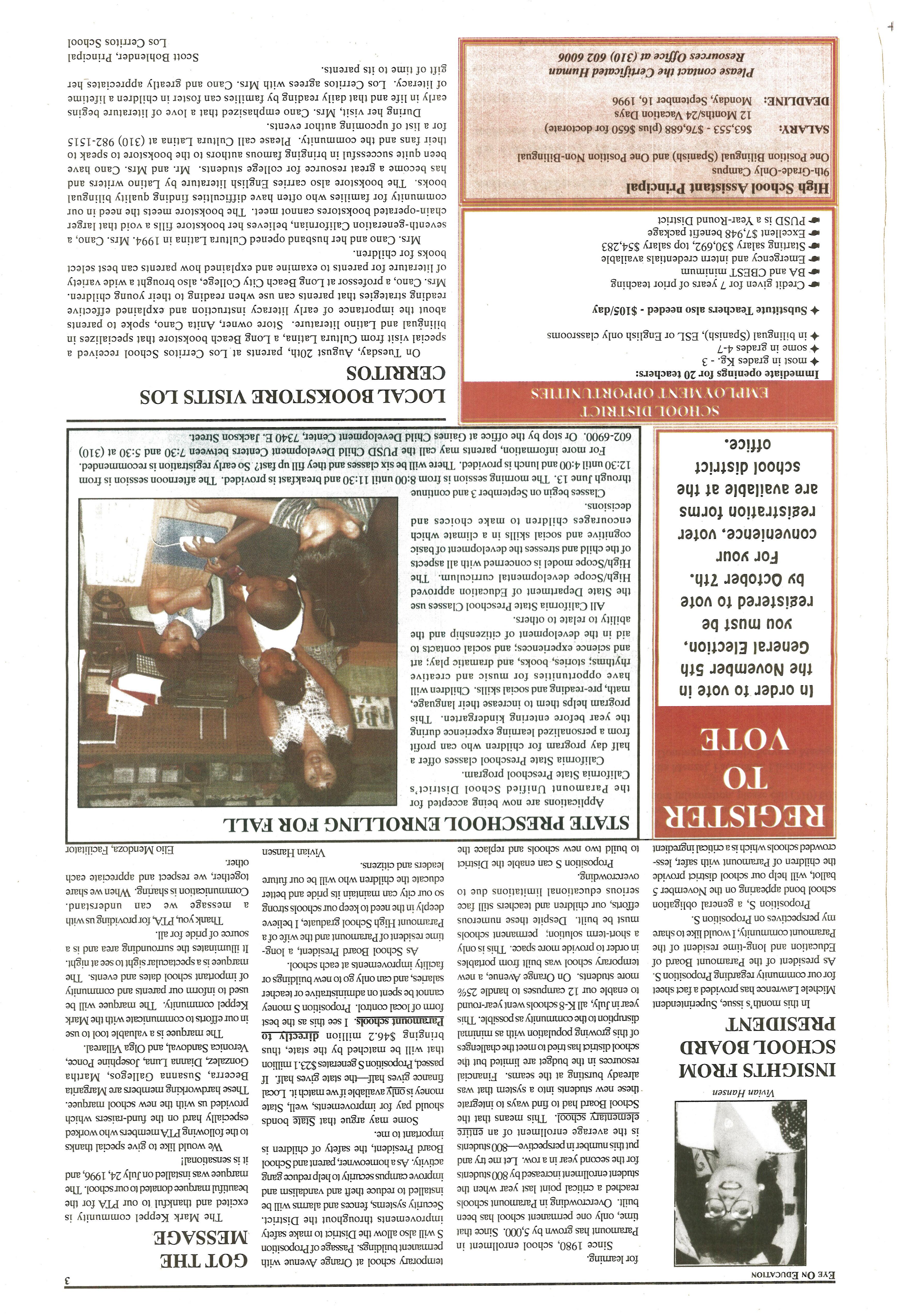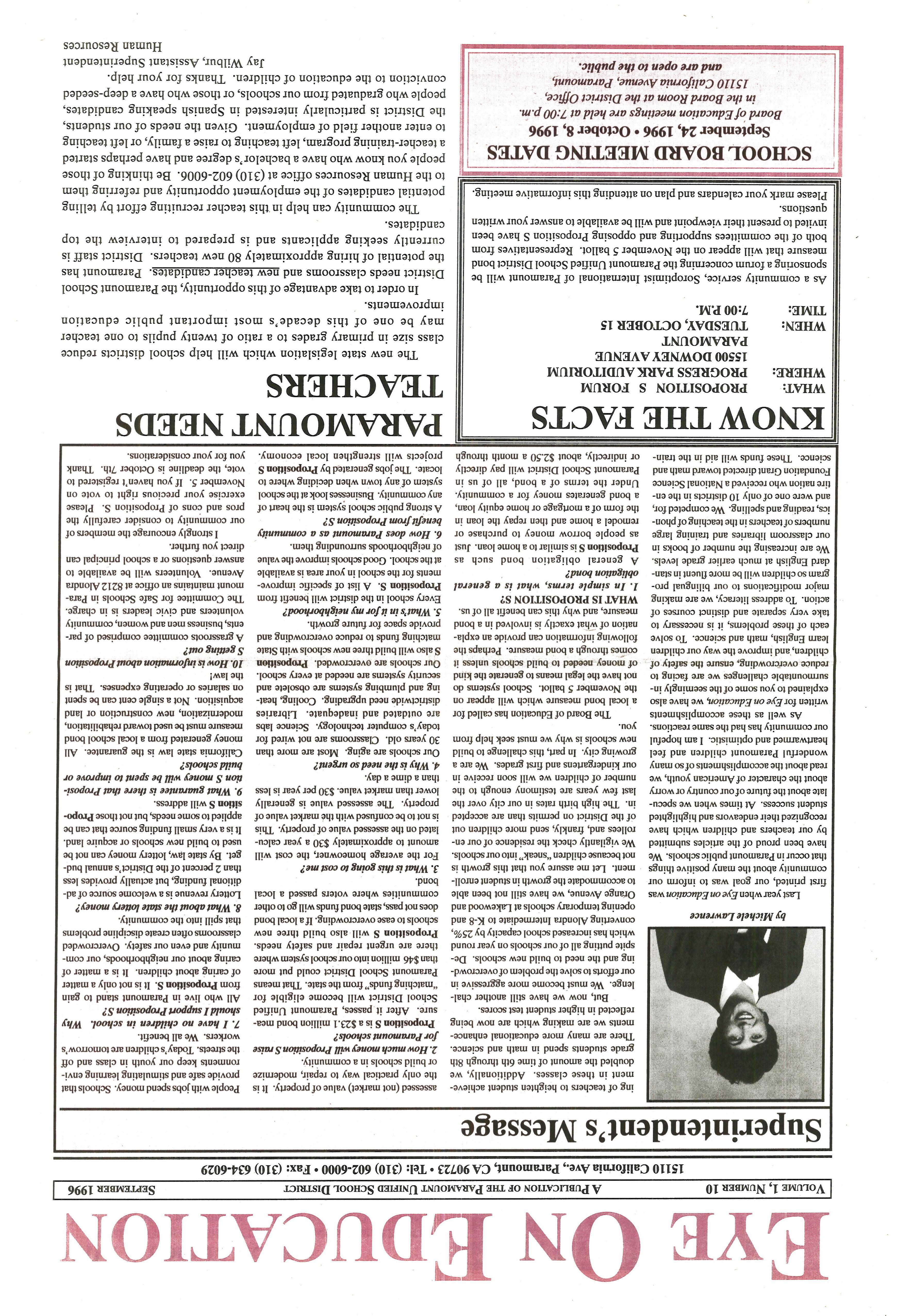 EYE ON EDUCATION SEPTEMBER 1996 by City of Paramount - Issuu