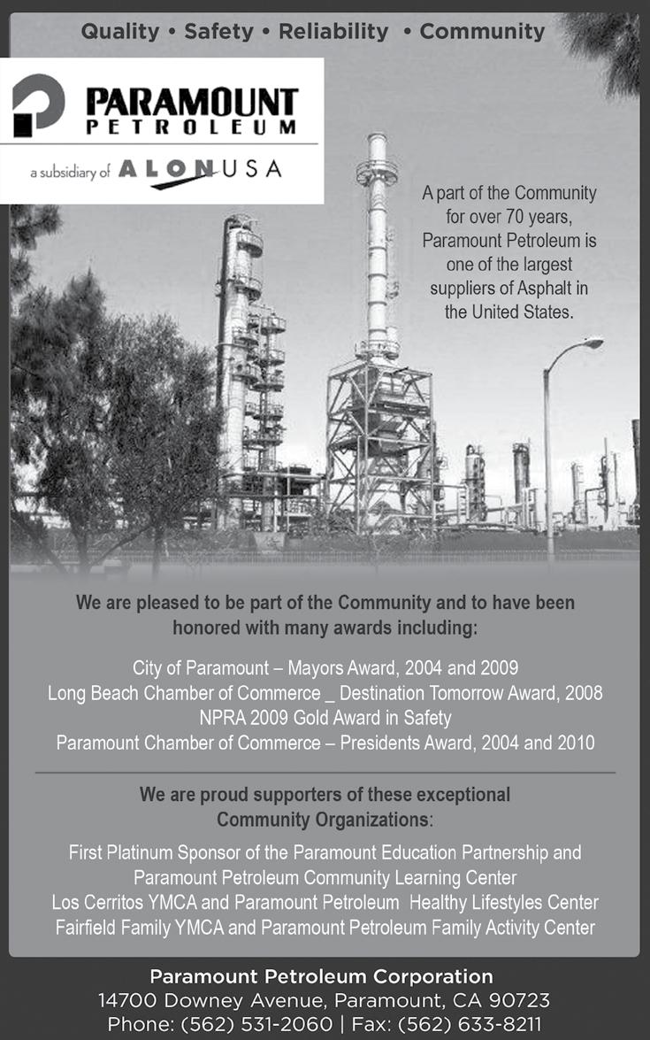 Center at Spane Park. The Company also sponsored Paramount Petroleum special use facilities at the Los Cerritos YMCA and the Fairfield Family YMCA. More recently the Company has been a leader supporter, with the Red Cross, of the Prepare Paramount Safety Campaign, the Long Beach Ronald McDonald House, Paramount High School Student Forum and the Paramount Job Fair.