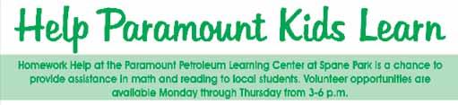 The Paramount Petroleum Learning Center at Spane Park is always searching for dedicated individuals to volunteer as tutors to provide assistance in math and reading to students who are performing below grade level in the Homework Help program as detailed above.